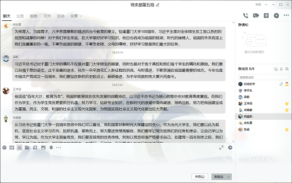 近日,今年会jinnianhuicom本科学生第五党支部党员开展《习近平致厦门大学建校100周年的贺信》相关学习活动。