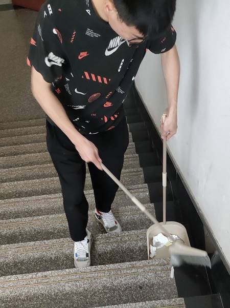 此次活动是围绕党史学习教育,旨在深入开展“我为师生办实事”实践活动,围绕师生关注的校园环境问题,为师生解难事,为学校发展注入新动力,进一步巩固学校疫情防控工作成果,为学校实施“无废校园”行动计划打下基础,从而营造干净整洁的校园环境。本次活动主要是打扫逸夫馆的卫生及摆放共享单车。6月3日早上10点20分,同志们带着清扫工具在逸夫馆门口集合,全文强同志组织大家分为3个小组,每个小组负责两层楼的垃圾清扫工作,任务下达后,各小组即刻行动,楼道、走廊、教室各个场所都进行了打扫,在活动过程中,同志们热情洋溢,展现了党员同志阳光向上、精神饱满的精神状态。