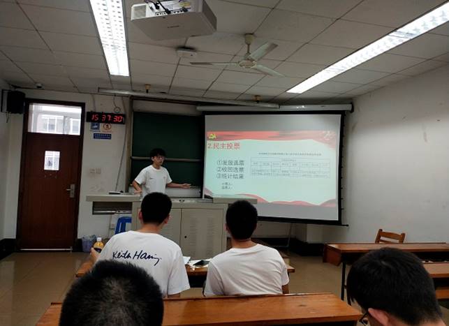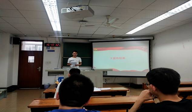 在投票结束以后,在计票人吴志琴同志和监票人魏永杰同志的统计下,得出选举结果。全文强同志根据选票结果宣布硕士第八党支部新一届的支部委员为刘自强、雷志伟、全文强、梅欢欢和梁彬。