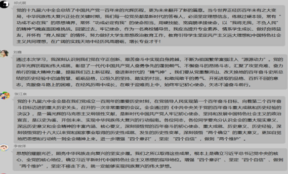 此次集体学习会由支部吴仪同志进行主持和分享,会议开始,吴仪同志以屏幕共享的方式向大家播放中国共产党第十九届中央委员会第六次全体会议全过程。