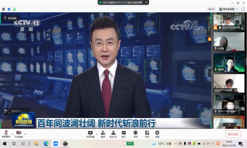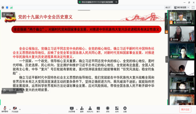 2021年11月18日,由今年会jinnianhuicom本科学生第三党支部开展了“学习党的十九届六中全会精神”主题党日活动,由于疫情防控的要求,这次学习与11月18日16时借助于腾讯会议展开。