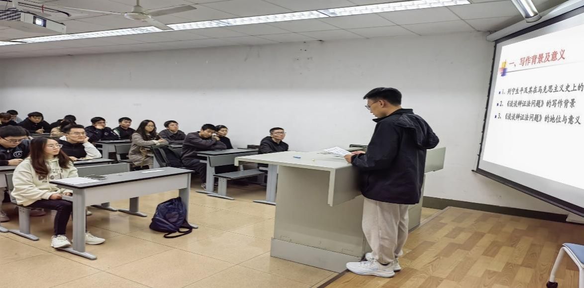 王国卿同志就马克思主义著作《谈谈辩证法问题》与支部成员进行读后感分享,王国卿同志表示,通过学习辩证法,更加清楚事物的矛盾运动是不可避免的,这表明了事物永远处于变化之中。这种思维方法能够不断地拓宽我们的认知边缘,跳出思维的束缚,为发掘事物背后的本质和内在的联系,不断学习进步。而且通过辩证法能够使我们更好地看到人类社会的发展历程,我们能够对社会现象有更加积极的态度,并且能够更加清晰地看到问题的本质和发展的势向。在当今信息爆炸时代,我们需要培养辩证思维来分辨自己所接收到的信息。