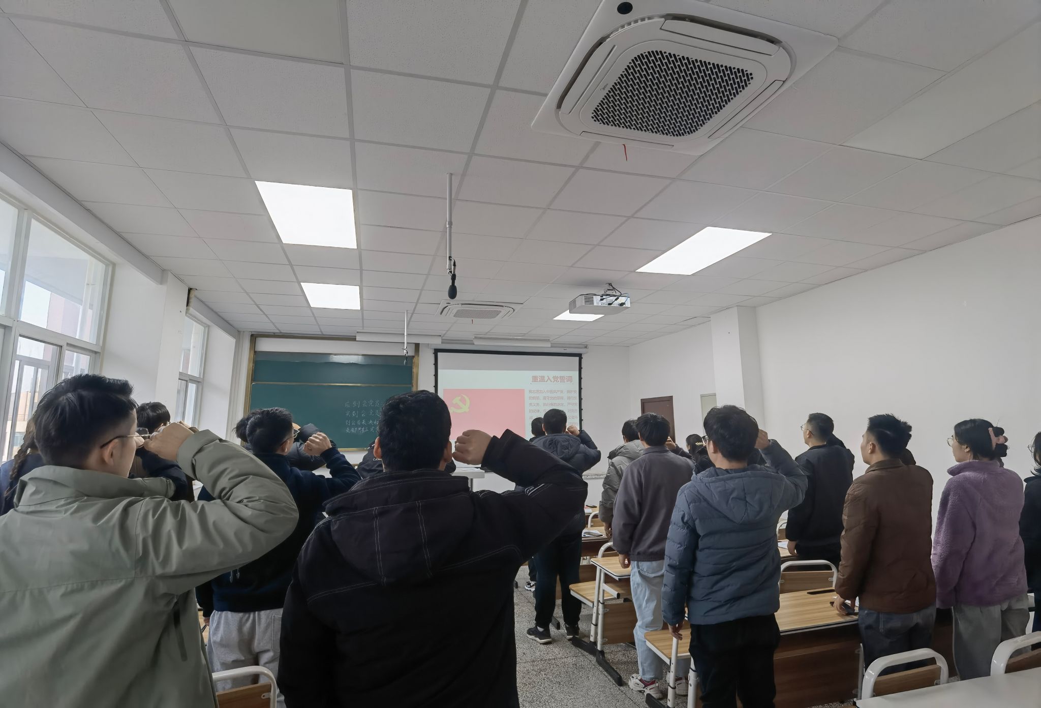 表决完成后,大家对2名新预备党员的加入表示了欢迎和祝贺,2位新同志也对支部大会讨论的结果表明了自己的态度并展望了未来的发展。孟凡善同志总结到,希望2位预备党员在今后的发展中能够向支部优秀党员同志看齐,严格要求自己,积极参加支部活动,保障出勤率,积极学习青年大学习、学习贯彻落实习近平新时代中国特色社会主义思想、党的二十大精神,将个人发展与国家发展紧密结合起来,真正做到“学思想、强党性、重实践、建新功”。大会最后,孟凡善同志带领大家宣读入党誓词,重温了入党的初衷和决心。