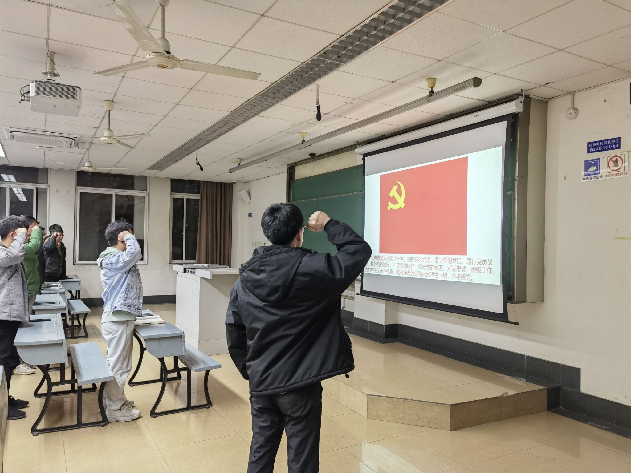 党支部推选黎杰同志为监票人、李金龙同志为计票人,严格按照公平、公正、公开的原则,经无记名投票,34人同意接收范书伟、魏丞耀、杨宜儒、崔陈、谷熙、彭志成、田昊、王栩、吴刚九位同志按期转为正式党员,0人反对,0人弃权。最后,曾鸿同志带领全体党员同志重温入党誓词,庄严的宣誓令全体党员加深了思想觉悟。