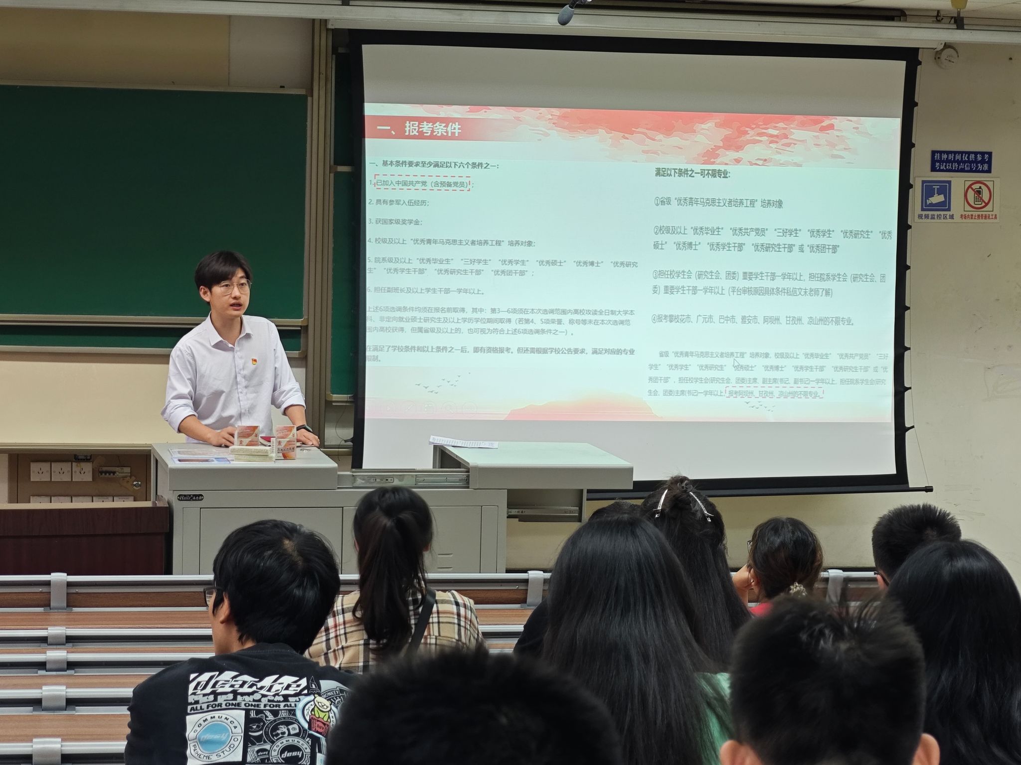 本次分享会由硕士第九支部2022级、2023级全体党员及入党积极分子参加,分享会开始前,支部副书记王漾君同志向大家介绍了此次分享会邀请的嘉宾,并说明分享会对于同学们未来发展的重大意义。
