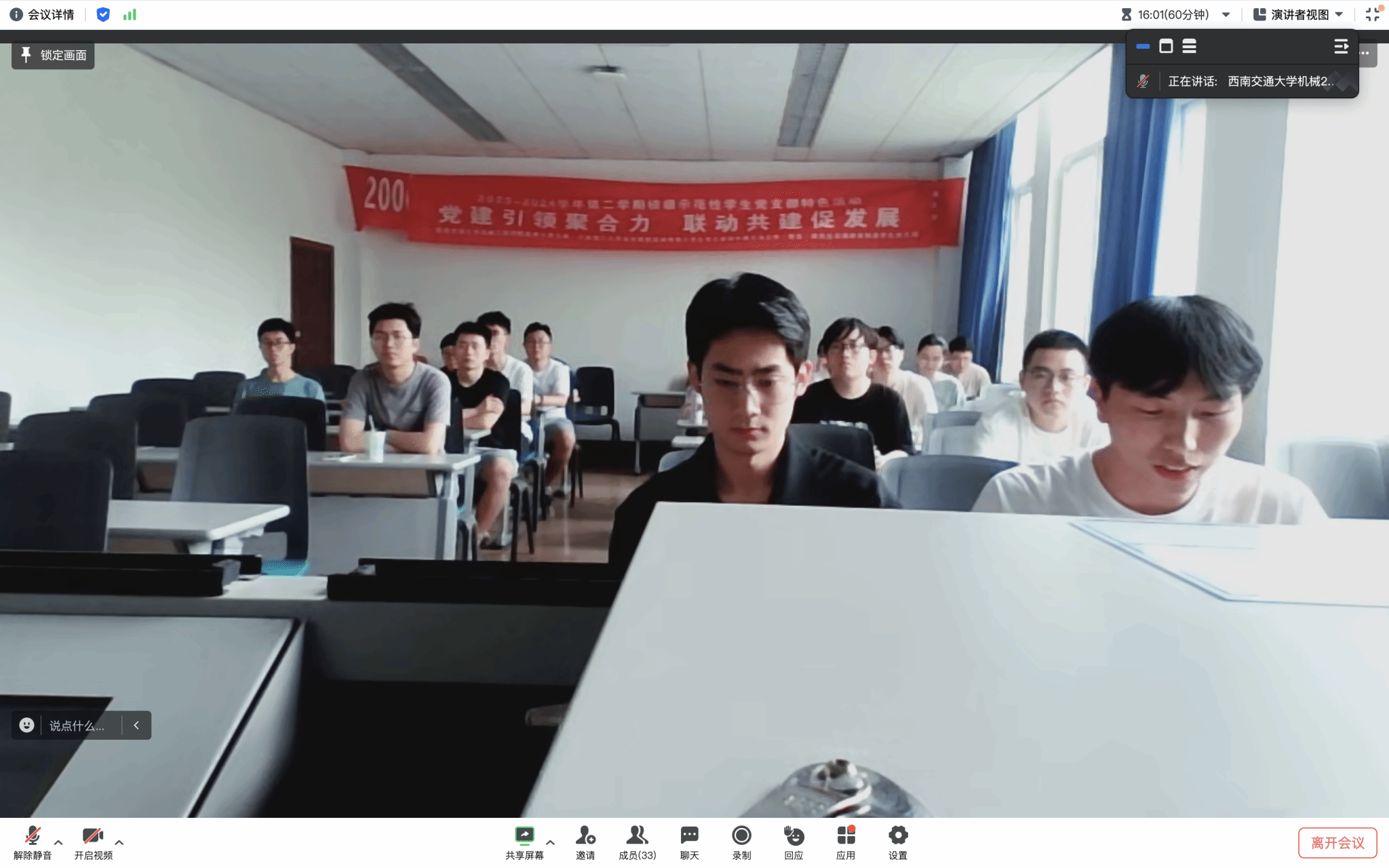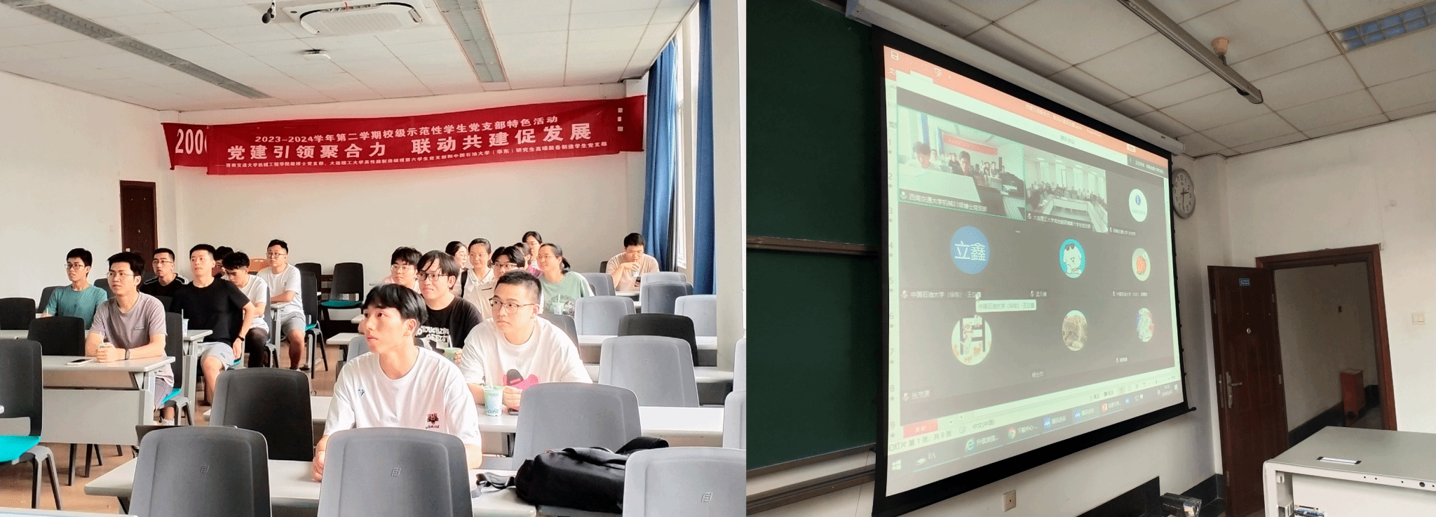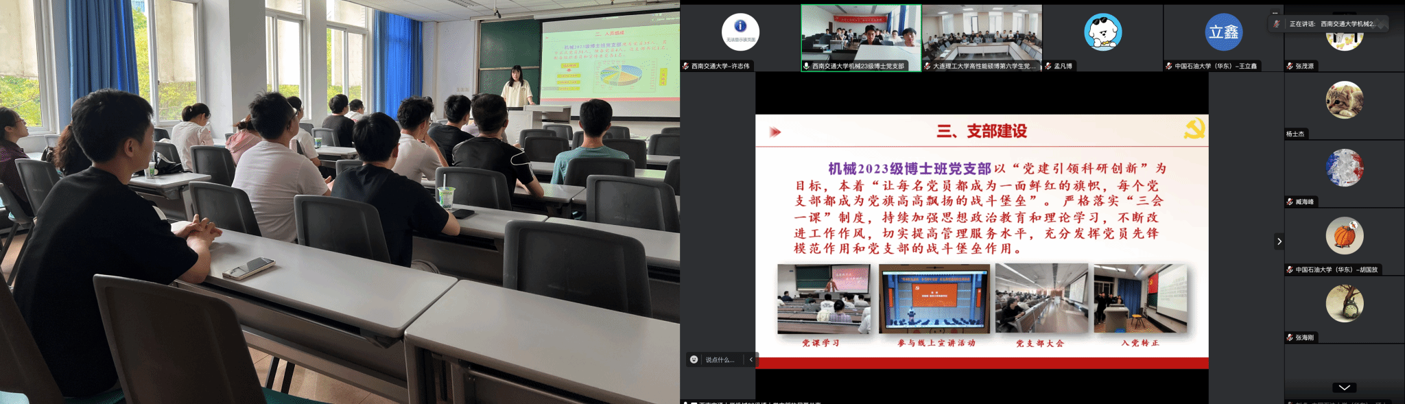 5月24日下午,今年会jinnianhuicom23级博士党支部、大连理工大学高性能制造硕博第六学生党支部和中国石油大学(华东)机电工程学院研究生高端装备制造学生党支部召开联建共建暨党纪学习教育主题党日活动,通过线上(腾讯会议)+线下座谈形式,以“提升党建引领力、提升党建聚合力,提升党建战斗力”为建设目标,以“党建引领聚合力,联动共建促发展”为教育主题,以“线上线下相结合,党建与科研相结合”为核心形式,就党纪学习教育和下一阶段联合组织开展主题党日活动等事项进行交流学习。三方支部全体党员参加会议。卢旭磊同志主持会议。