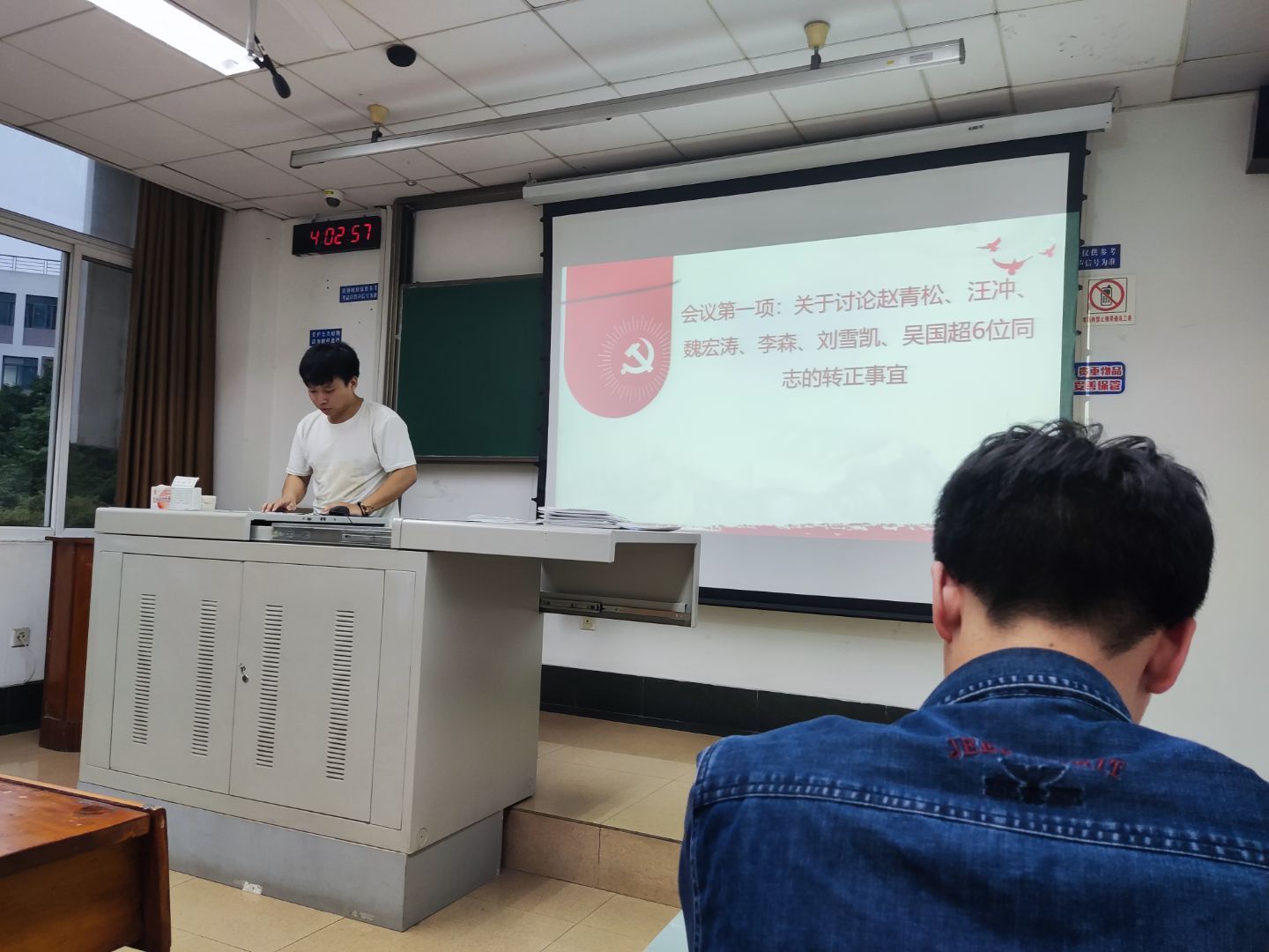 会议第一项:讨论赵青松、汪冲、魏宏涛、李森、刘雪凯、吴国超六位党员同志的转正事宜