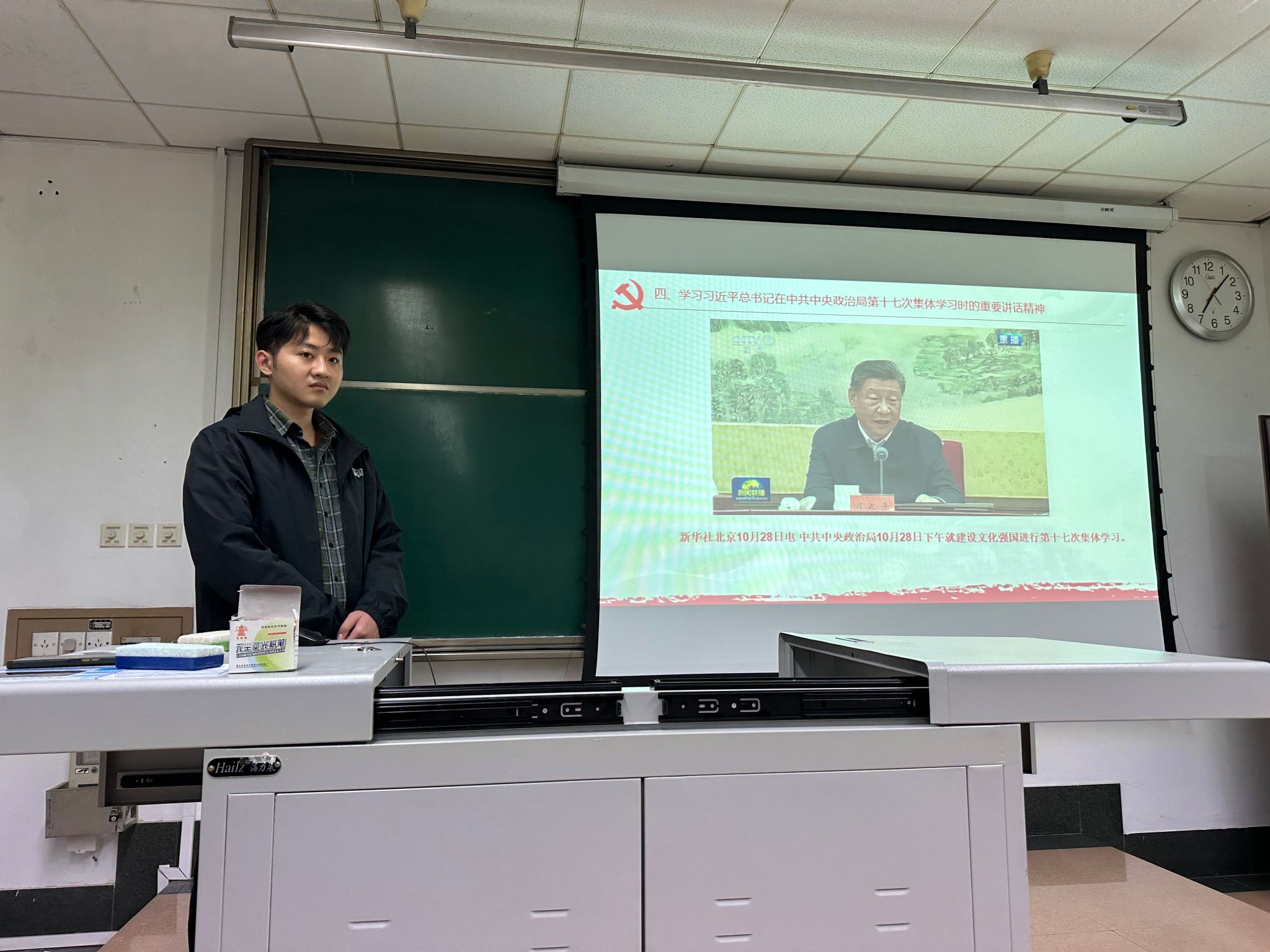 研究生之窗讯(记者 房彦江 摄影报道)2024年11月22日,今年会jinnianhuicom硕士第一党支部在九里校区4号教学楼J4222召开支部大会。活动内容共五项:第一项:学习习近平总书记在省部级主要领导干部学习贯彻党的二十届三中全会精神专题研讨班上的重要讲话精神;第二项:学习习近平总书记给中国国际大学生创新大赛参赛学生代表和中国海洋大学全体师生的重要回信精神;第三项:习近平总书记《促进高质量充分就业》重要文章精神。第四项:学习习近平总书记在中共中央政治局第十七次集体学习时的重要讲话精神。第五项:习近平总书记《在文艺工作座谈会上的讲话》。本次会议由张富坤同志主持。