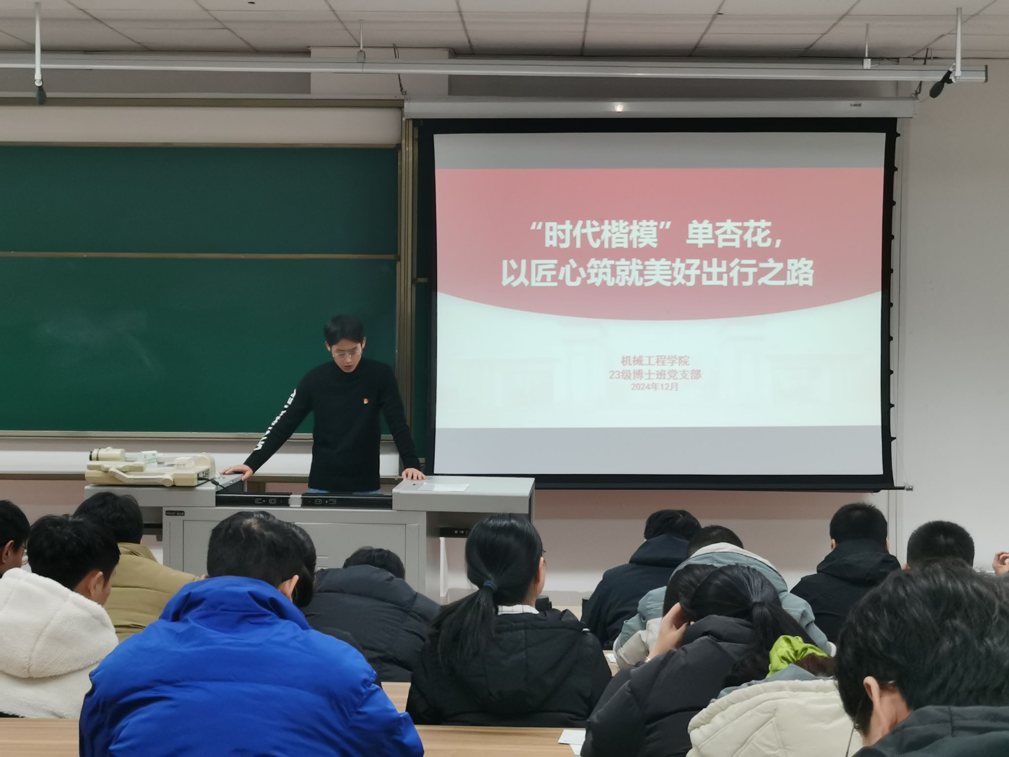 研究生之窗讯(记者 计丹 李笑晗 摄影报道)中央宣传部日前向全社会宣传发布单杏花同志的先进事迹,对她在科技创新赋能交通强国建设方面的卓越贡献给予了高度肯定,授予她“时代楷模”称号,号召全社会向她学习。今年会jinnianhuicom23级博士班党支部积极响应号召,于12月12日开展学习“时代楷模”主题党日活动。