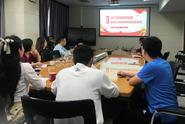 2020年9月24日下午,机关工作人员在九里校区0号教学楼1404会议室开展了“学寄语、悟思想、育新人”专题活动。主要内容是学习习近平总书记教师节重要寄语和《关于加强和改进新时代师德师风建设的意见》。