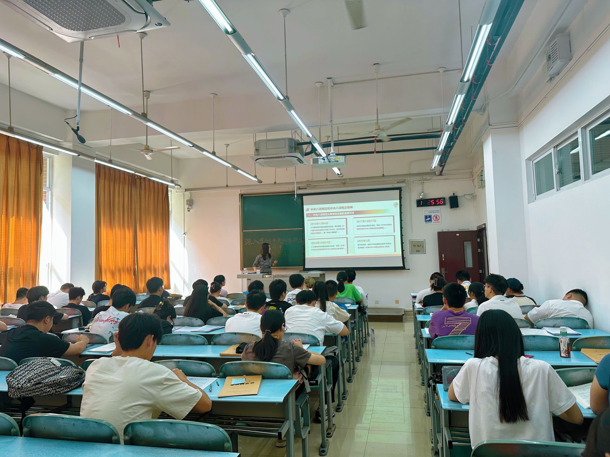 学院党委副书记沙晓雪以 “坚定信念,行稳致远——深入贯彻中央八项规定精神”为题,为支部党员讲授专题党课。她从历史纵深与现实需求出发,系统阐释了中央八项规定的出台背景与核心要义,强调其作为 “长期有效的铁规矩、硬杠杠” 的政治意义。同时结合中央八项规定从制定到实施的重要时间节点,解读了中央八项规定和中央八项规定精神的区别。