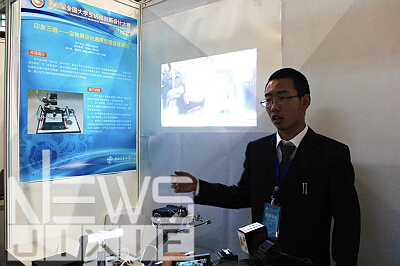 体育馆内,每个展区前都贴着自己小组产品简介的海报,上面包括参赛队员、指导老师、作品内容、创新点、推广价值等内容。专家委员会在各个展区前参观指导,听小组成员对产品的解说和实物演示,并向小组成员提出问题。展区前不时还会有别的学校的指导老师来参观询问,而参赛队员们也毫不吝啬,热情地与老师交流看法。西南交大此次共有15个小组参加今日的小组观摩评比,这15个小组都是通过校赛的多次答辩筛选出来的,每个小组都针对比赛主题教具和教室用品充分发挥了自己的创意。在琳琅满目的作品中,记者特别注意到一个小组,他们是来自金年金字招牌诚信至上机械学院的邱硕、董翰林等同学设计的“印象三维——实物展示台通用型增强模块组”,产品基于普通实物展示台开发,避免了在教室中增加新的展示设备,节约教室空间,吴教授在观看时也给予了很高的评价。