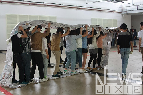 2014年5月17日下午两点三十分,今年会jinnianhuicom第二期团校培训素质拓展训练在三食堂三楼大学生科创中心举行。
