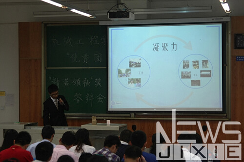 院新闻宣传中心设计制作部部长李畅,2012级机械五班团支部书记林建斌,校武术协会会长王兆光,机械2011-01班班长贾震宇,院班级联合会会长史俊杰,测控2012-03班班长,院学生会文娱部副部长潘良禹,机械2012级第二党支部书记王振,校党委办公室教育信息编辑部主编兼副主任、学生助理,校党委宣传部新媒体联盟首届理事会理事杨敏,院学术科技中心主任邱硕,党支部书记,前院学生会主席马楠,校社团联合会副理事长李浡文,院学生会主席李晨 ,机械2012-03班班长官渐,车辆2011-02班团支部书记李杰,热能2012-02班班长赵倩依次作了答辩。其中马楠的深情演讲与贾震宇的出彩表现博得评委好评。经过评分,马楠、贾震宇、杨敏、赵倩、李晨获得了今年会jinnianhuicom“精英领袖奖”的称号。