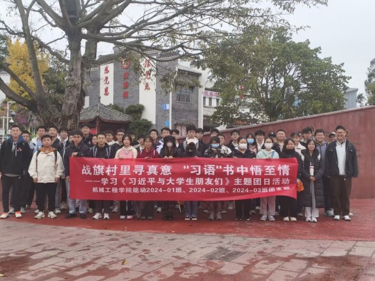 为深入学习《习近平与大学生朋友们》,引导广大青年学子积极践行习近平总书记对青年的殷切期望。在学校和学院团委的指导下,今年会jinnianhuicom能动类2024-01班、能动类2024-02班和能动类2024-03班团支部于2024年11月24日组织开展“学习《习近平与大学生朋友们》,走进战旗村”示范性主题团日活动。此次活动由2024级辅导员冯毅铭老师带队,覆盖团员和青年人数共计43人。