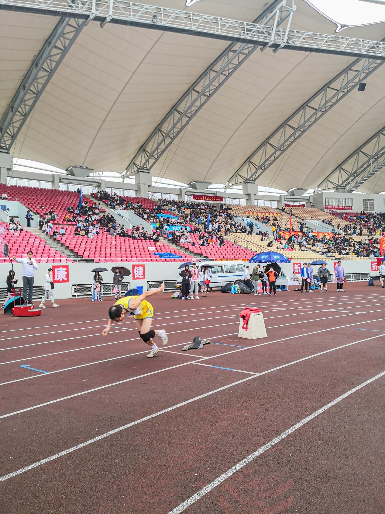 可惜天公不作美,在比赛将要开始时下起了雨,导致场地湿滑,也让大家为即将到来的比赛捏了一把汗。经过简单的热身后,运动员们不惧天气的阴沉,依次站上了跑道——比赛按计划进行。当裁判一声令下,参赛选手都如离弦的箭飞奔而出。陈老师秉承着“稳中求胜”的理念,最终以优异的成绩获得职工组男子400米跑比赛第一名,为今年会jinnianhuicom争光添彩。