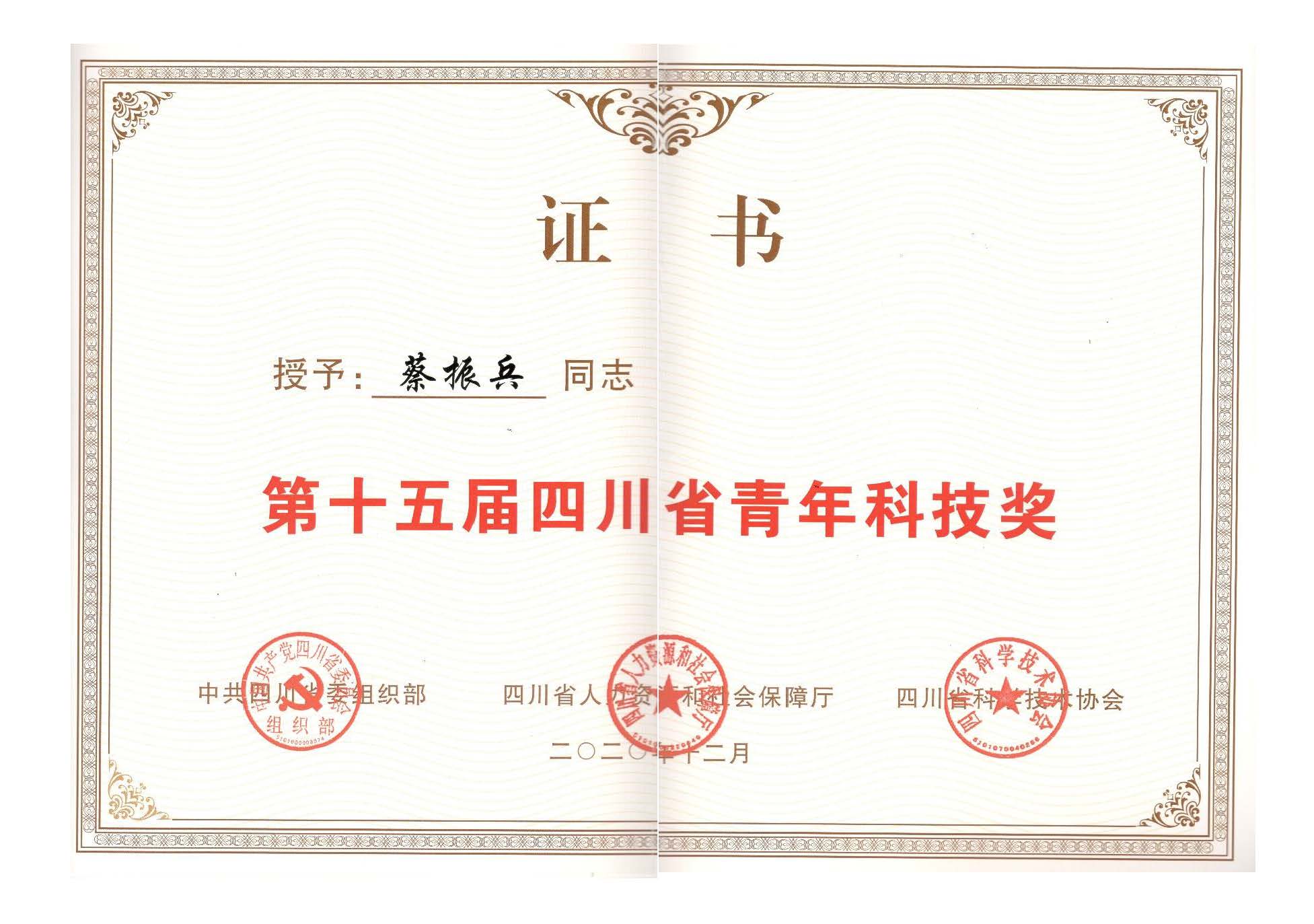 我院青年教师蔡振兵研究员荣获“四川省青年科技奖”荣誉称号