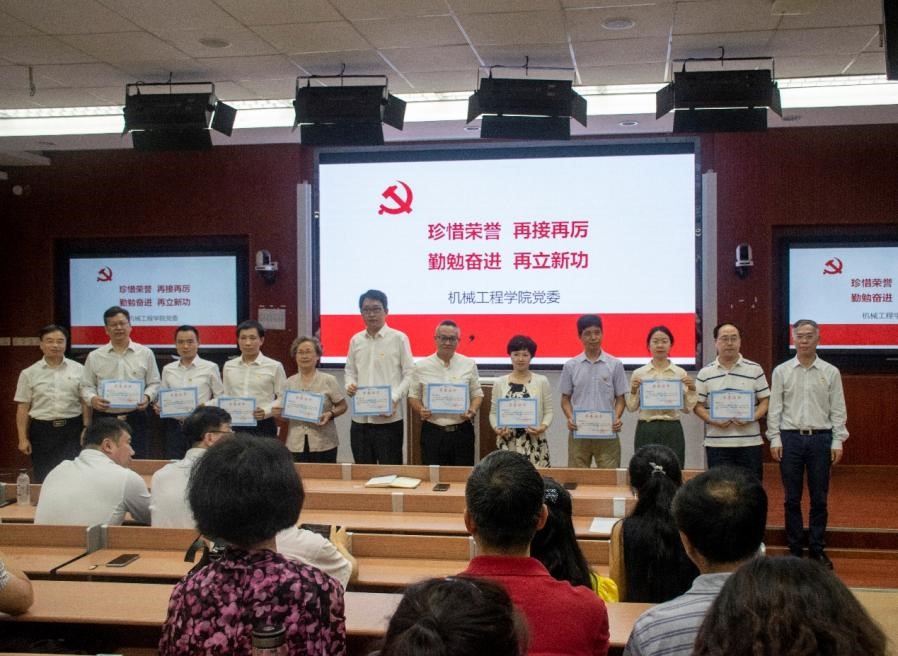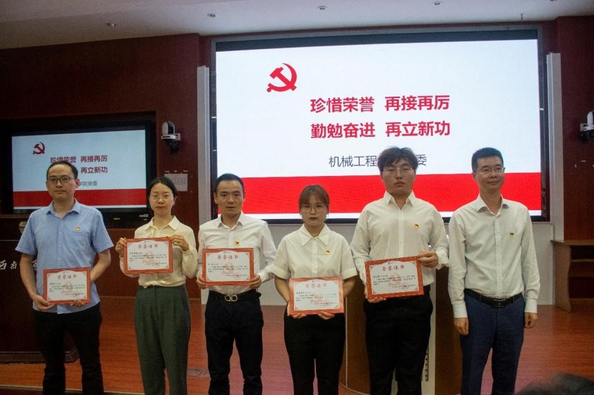 在“两优一先”表彰环节,程军首先宣读了《中共今年会jinnianhuicom委员会关于2019-2021年“两优一先”表彰的决定》,授予丁王金栋等40名同志“优秀共产党员”称号,授予邓慧心等10名同志“优秀党务工作者”称号,授予摩擦学党支部等5个党支部为“先进党支部”称号。董大伟、钱林茂、袁艳平分别为获得表彰的集体和个人进行了颁奖。
