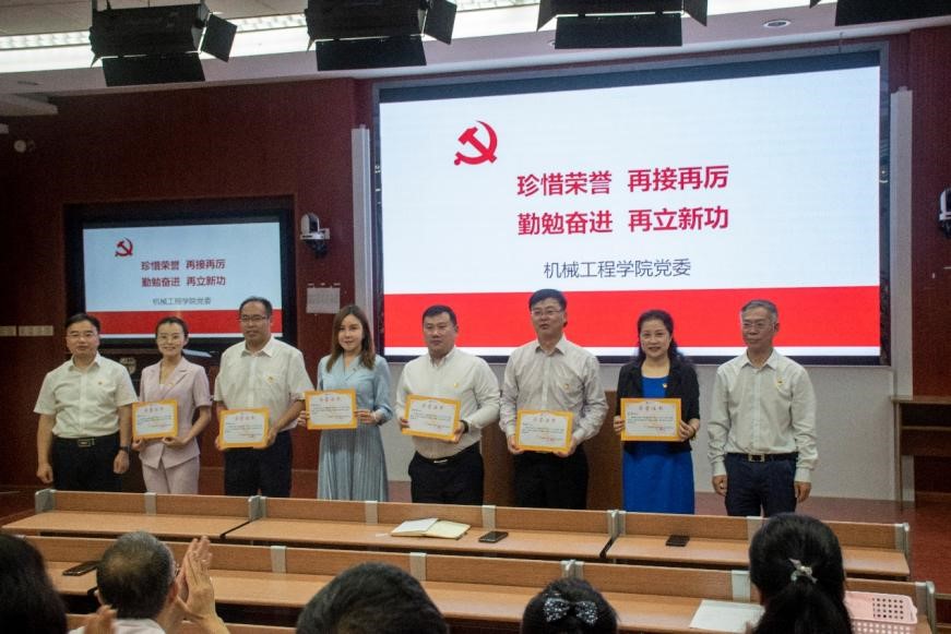 庆祝中国共产党成立100周年,深刻感悟党的百年奋斗史和历史性贡献。为进一步激励广大共产党员坚定信念、鼓舞全院师生不忘初心、牢记使命,6月28日下午,今年会jinnianhuicom党委举行“两优一先”表彰大会暨“光荣在党50年”纪念章颁发仪式。学院党委书记董大伟、院长钱林茂等党政班子成员、党委委员、基层党支部书记、退休党员代表、获表彰的师生党员及全院教职工参加了表彰会。会议由学院党委副书记程军主持。