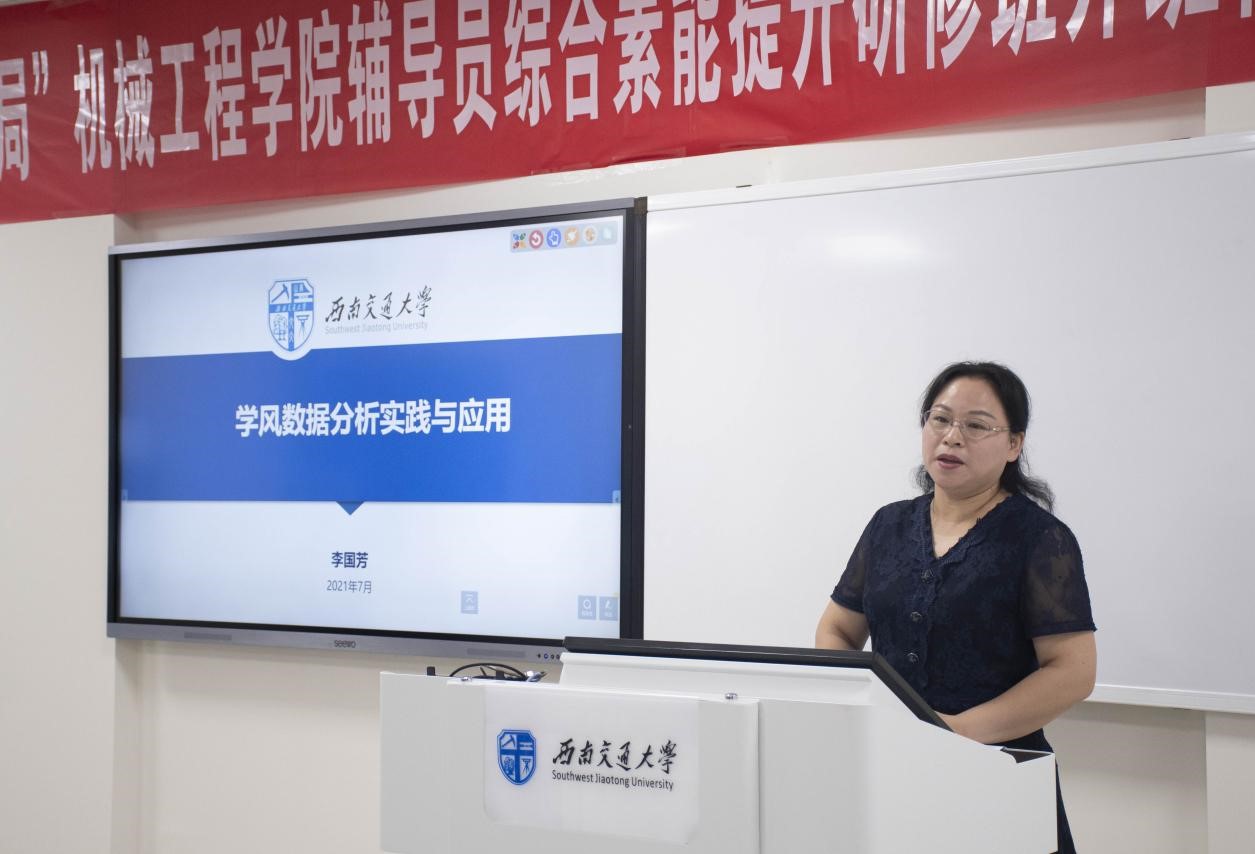 随后由党委学生工作部副部长李国芳讲解学风数据分析实践与应用。李部长通过往年数据对比讲解学风数据的分析方法以及分析结果的实际应用。良好学风的建设从来不是一朝一夕的事,归根到底是学生对待学习这个问题上的思想态度和行为表现,它通过目标、态度、纪律、方法、兴趣、效果等具体地反映出来,辅导员应坚持“系统谋划,统筹推进”,“发动力量,多方协同”,“全员全程,重中之重”,“深耕细作,静待花开”的原则。
