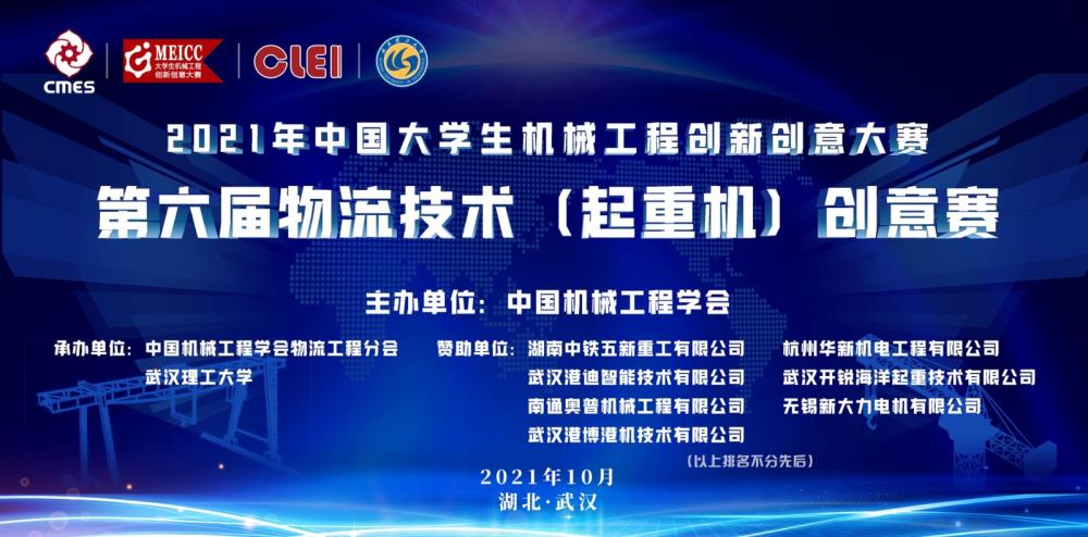 中国大学生机械工程创新创意大赛第六届物流技术(起重机)创意赛是中国机械工程学会主办的“中国大学生机械工程创新创意大赛”系列专业赛事之一,由中国机械工程学会物流工程分会与武汉理工大学、金年金字招牌诚信至上、太原科技大学、大连理工大学、同济大学等五所高校共同发起,2016年开始举办,已入选中国高等教学学会发布的《2015-2019年全国普通高校学科竞赛排行榜》《2020年全国普通高校学科竞赛排行榜》竞赛项目。