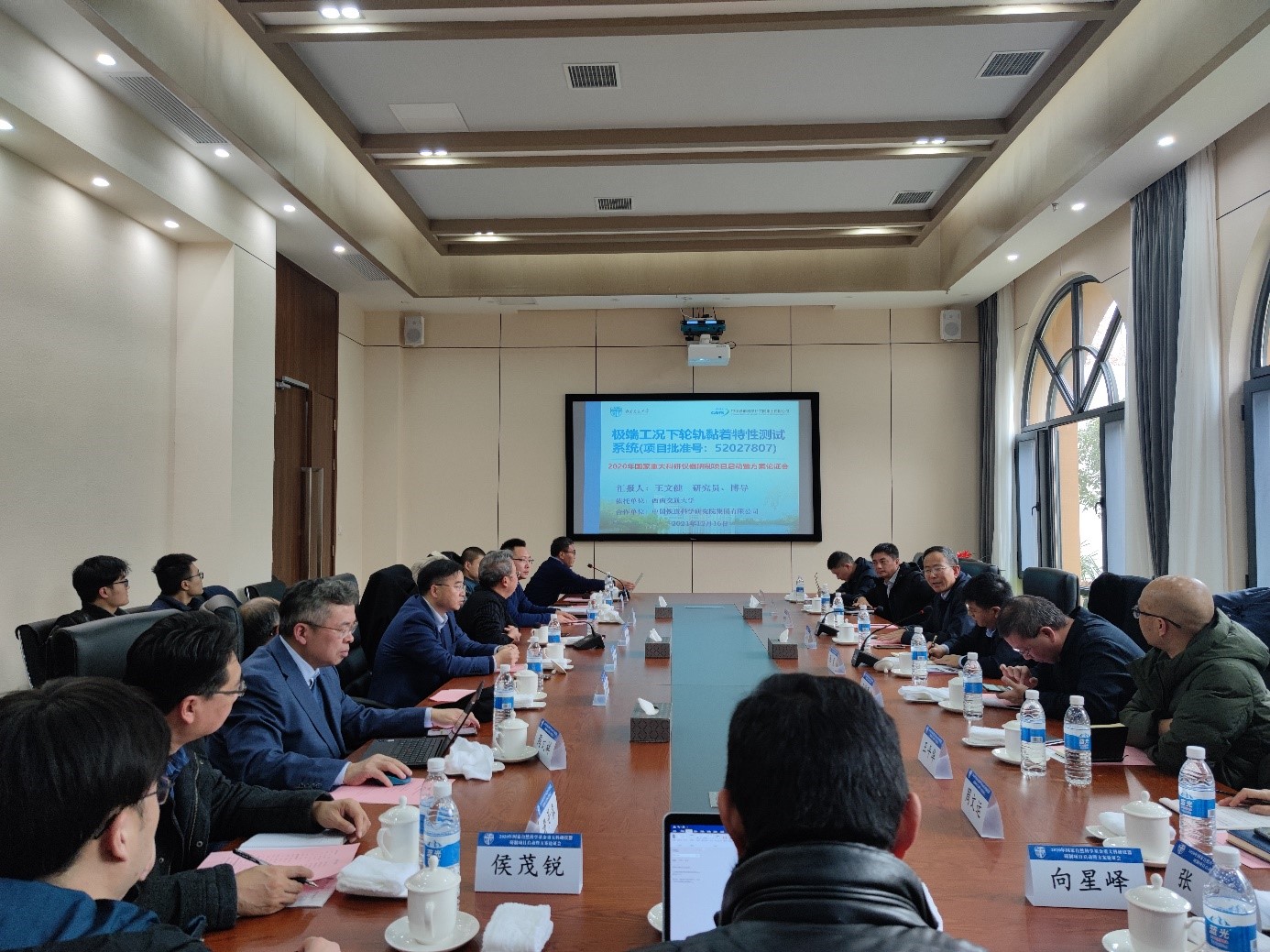 2021年12月16日,由我校主持承担的国家自然科学基金重大科研仪器研制项目启动暨方案论证会在金年金字招牌诚信至上镜湖宾馆召开。出席本次会议的专家和项目成员有:安徽省金属学会苏世怀会长、攀钢集团有限公司杨秀亮副总经理、攀钢集团有限公司陈勇高级技术顾问、重庆永进重型机械成套设备有限责任公司沈涛总工程师、中车资阳机车有限公司王平华主任、今年会jinnianhuicom王俊勇教授、金年金字招牌诚信至上牵引动力国家重点实验室陈建政研究员;金年金字招牌诚信至上副校长、项目负责人周仲荣教授、今年会jinnianhuicom钱林茂院长、科学技术发展研究院马霖副院长,项目组成员金学松、周文祥、王文健、赵鑫、黄景春、范志勇、张进、向星峄;中国铁道科学研究院集团有限公司侯茂锐副研究员、重庆苏试四达试验设备有限公司周文运经理。