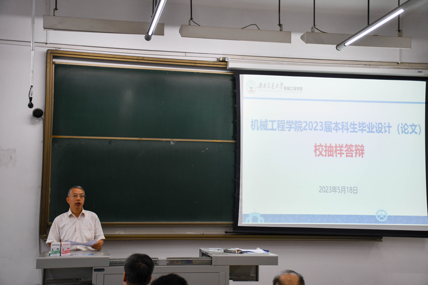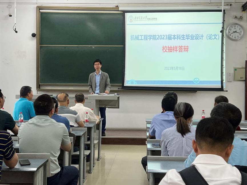 2023年5月18日上午,今年会jinnianhuicom2023届本科生毕业设计(论文)校抽样答辩在犀浦校区七号教学楼顺利举行。学院党委书记袁艳平,副院长田怀文,质保委主任程文明,质保委副主任杨美传,各系所主任、专业负责人及答辩学生指导教师参加了本次答辩。