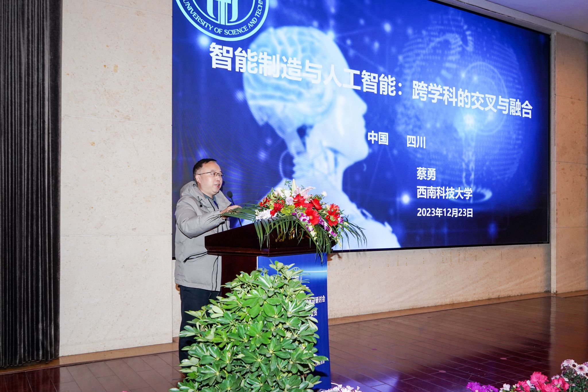 教指委委员、西南科技大学钟良教授代教指委副主任委员蔡勇教授以《智能制造与人工智能:跨学科的交叉与融合》为题,围绕人工智能和智能制造的应用及融合,提出未来需要更开放的学术环境和更灵活的研究策略,以支持跨学科研究的发展。