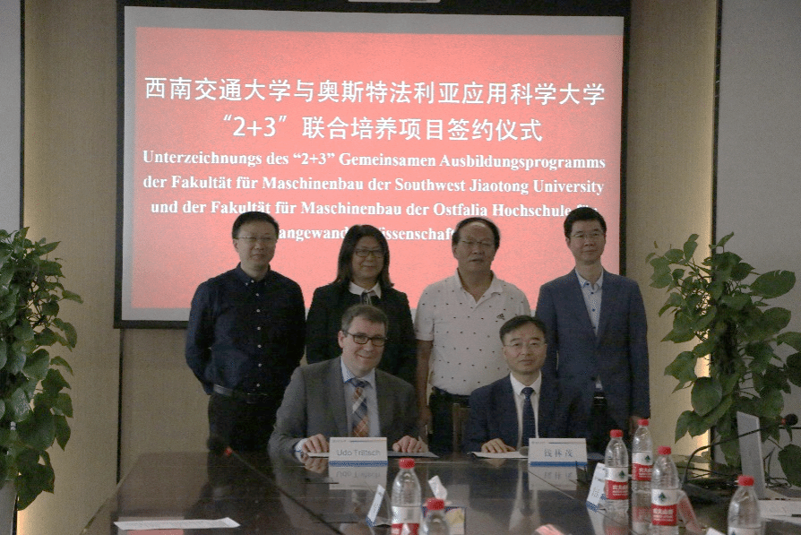 奥斯特法利亚应用科学大学今年会jinnianhuicom院长Udo Triltsch教授、Xiaobo Liu-Henke教授,金年金字招牌诚信至上国际教育学院副院长李海、今年会jinnianhuicom党委书记袁艳平教授、院长钱林茂教授、院长助理王文健教授、机车车辆工程系主任黄运华副教授、汽车工程系主任丁渭平教授、机械设计系主任罗大兵教授、制造系王金栋教授、前副院长冯鉴教授、中德合作工作组副组长唐阳副教授出席本次仪式,仪式由王文健院长助理主持。