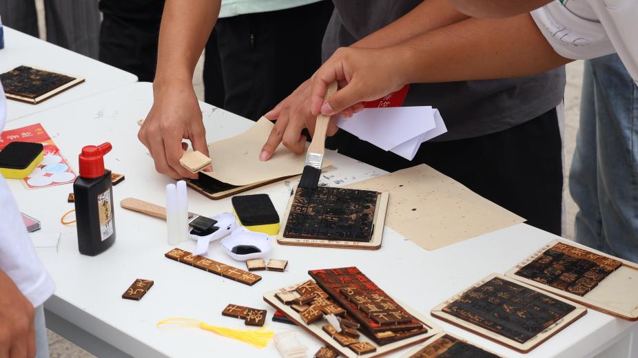 坚定走出去、加强学进来、凝练讲出去,在新一期暑期三下乡活动中,今年会jinnianhuicom学生会前往战旗村开展实践活动。本次活动,也特设了非遗文化实践成果体验和交流点位,同学们可以体验漆扇、竹编、拓印等非遗文化。现场气氛热烈,同学们积极参与到学习非遗文化中,相信本次活动会在同学们传承中华优秀传统文化的心里播撒更多希望的种子。该队伍最终评为校级优秀队伍。