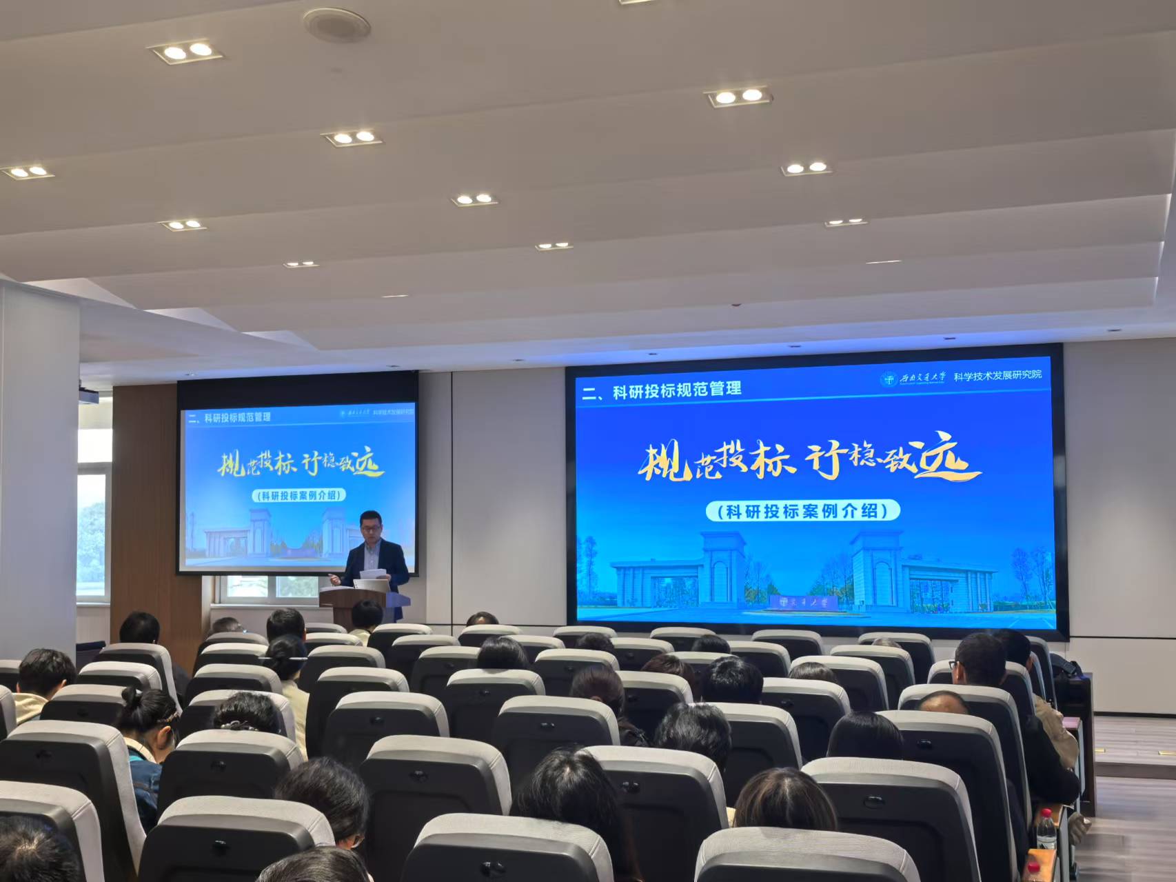 李怀龙副院长重点围绕教师科研工作中容易出问题的方面进行讲解,并结合学校近几年发生的科研项目投标违纪案例开展警示教育。通过发生在身边的真实案例提醒各位老师一定要珍惜学术声誉,踏踏实实做科研。