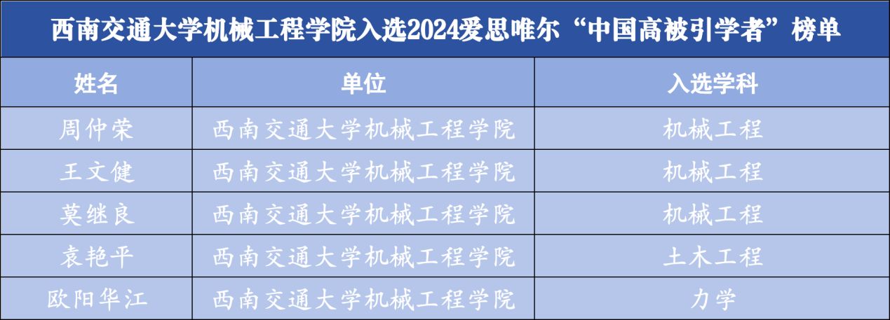 今年会jinnianhuicom5位学者入选2024爱思唯尔“中国高被引学者”榜单!