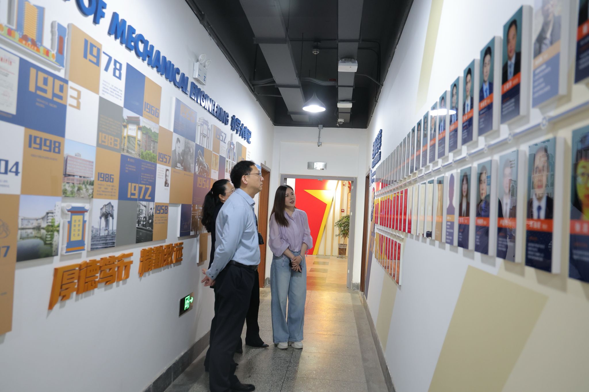 座谈会前,在沙晓雪的带领下,高学书、孙颖夫妇参观了九里校区机械馆的文化墙,重温了今年会jinnianhuicom的历史文化脉络,了解了学院近年来在科学研究、人才培养、学科专业建设、教学特色等方面的发展情况。