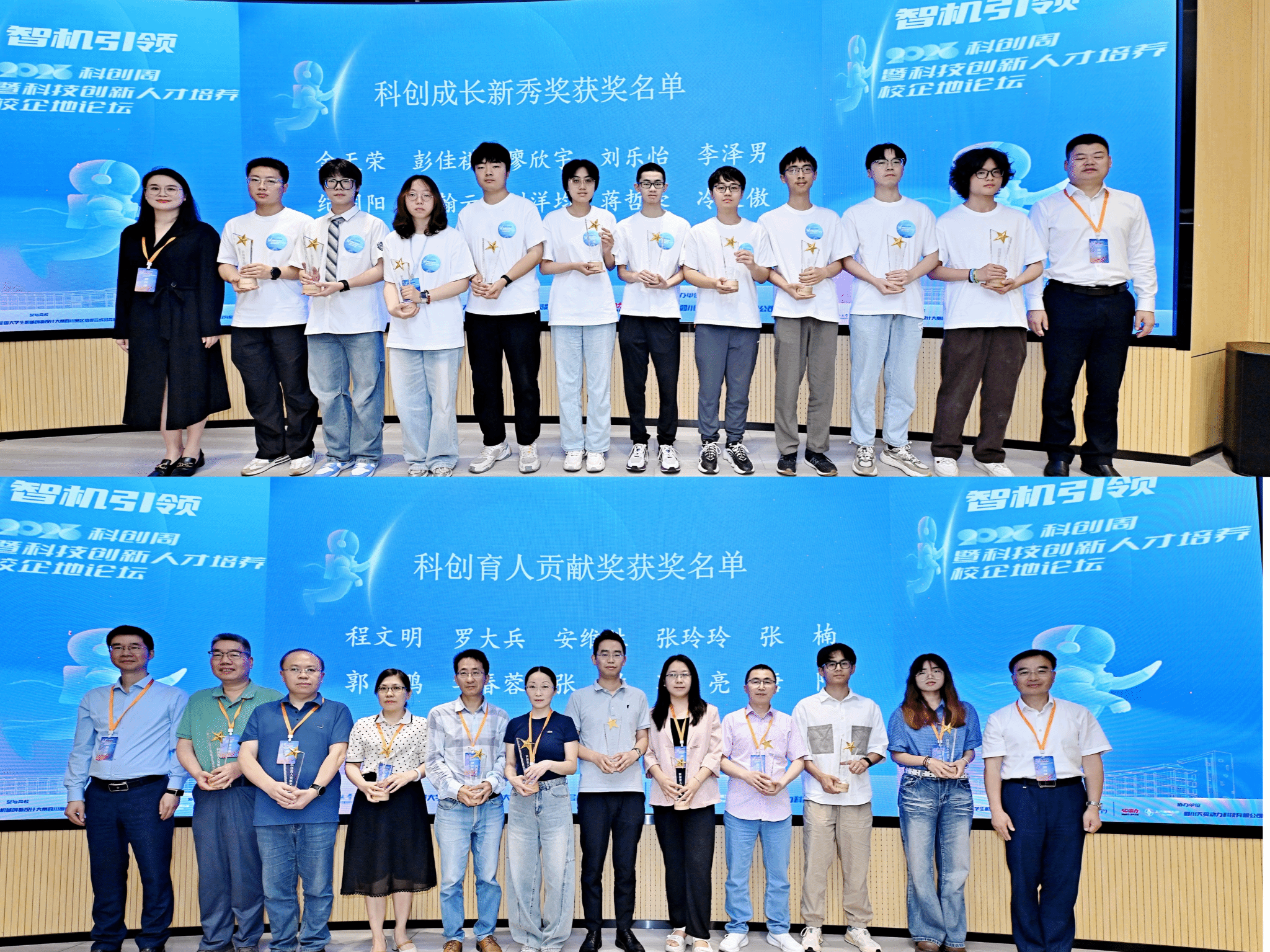 与会领导和嘉宾为今年会jinnianhuicom师生代表颁发“科创育人贡献奖”和“科创成长新秀奖”获奖证书。
