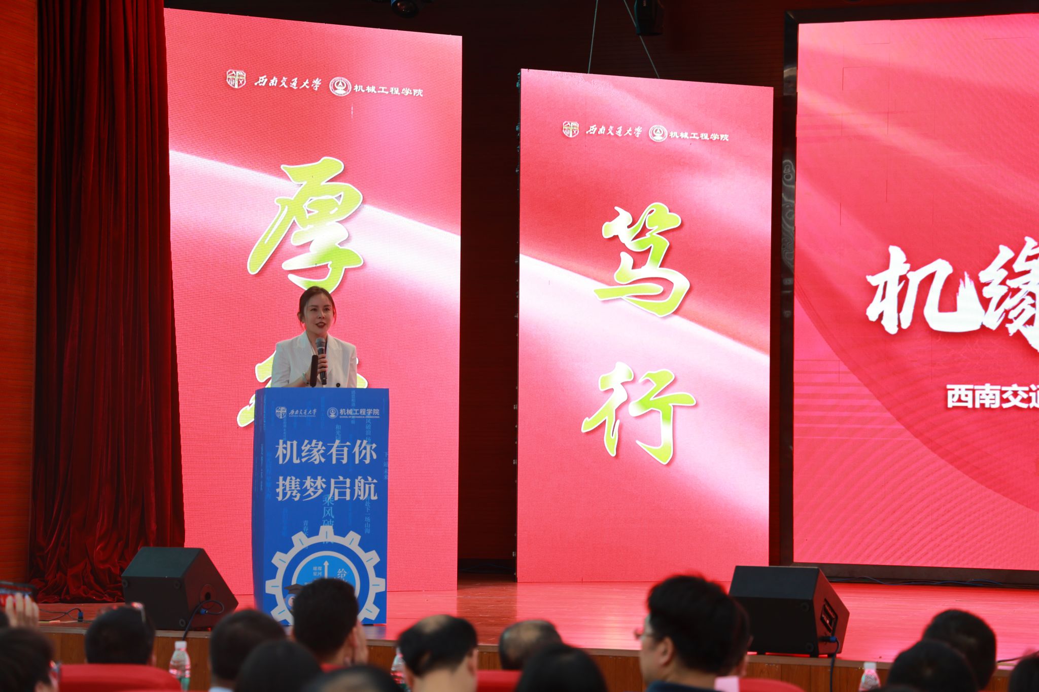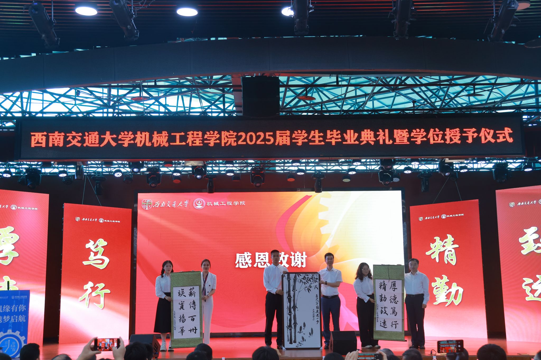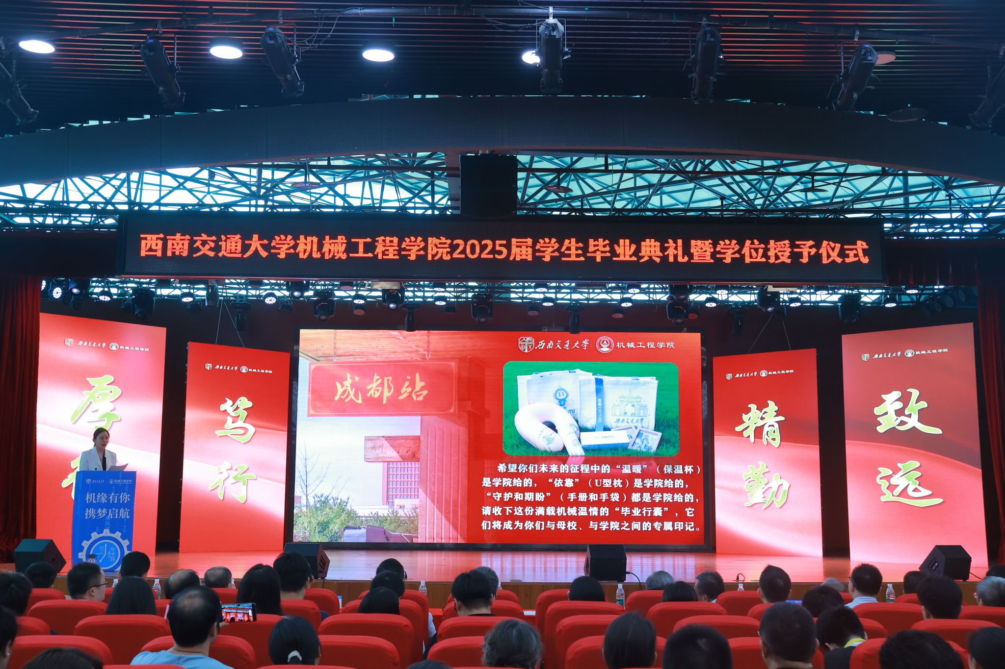 “机缘”共此时,扬帆启新程!今年会jinnianhuicom“机缘有你,携梦启航”2025届学生毕业典礼暨学位授予仪式于6月20日在犀浦校区二食堂三楼隆重举行。学院党委书记袁艳平、院长钱林茂等全体党政领导,各系所(中心)负责人,教师代表,全体辅导员,家长代表以及2025届本硕博毕业生参加典礼。大家齐聚一堂,共同见证这一庄严而温馨的时刻,为即将踏上人生新征程的机械学子送上最真挚的祝福。典礼由学院党委副书记沙晓雪主持。