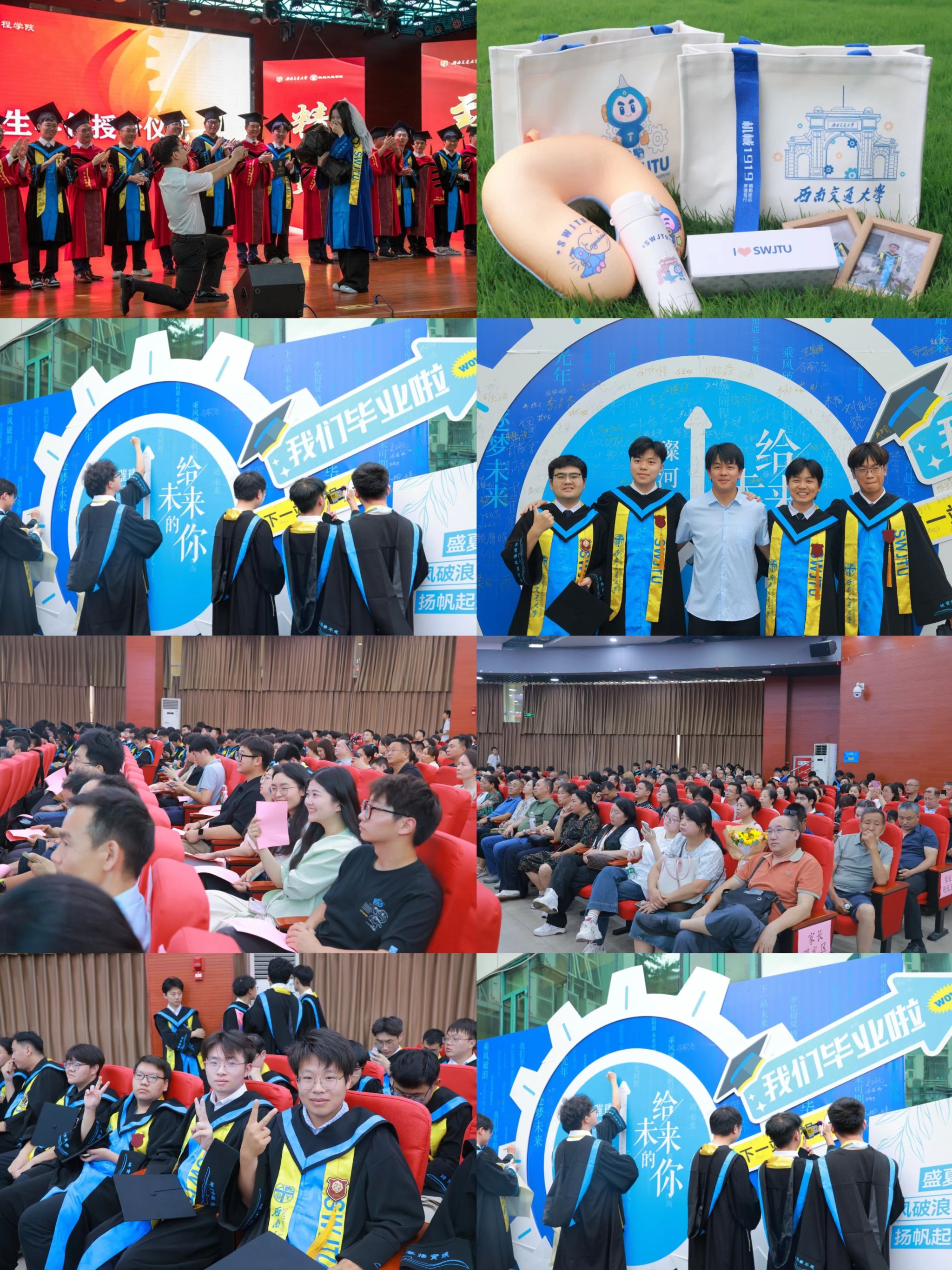 最温情的环节莫过于礼物互赠。学院为每位毕业生精心准备了满载机械温情的“毕业行囊”——寓意“温暖”的保温杯、象征“依靠”的U型枕、守护“回忆”的个人照片、代表“守护和期盼”的手册与手袋。