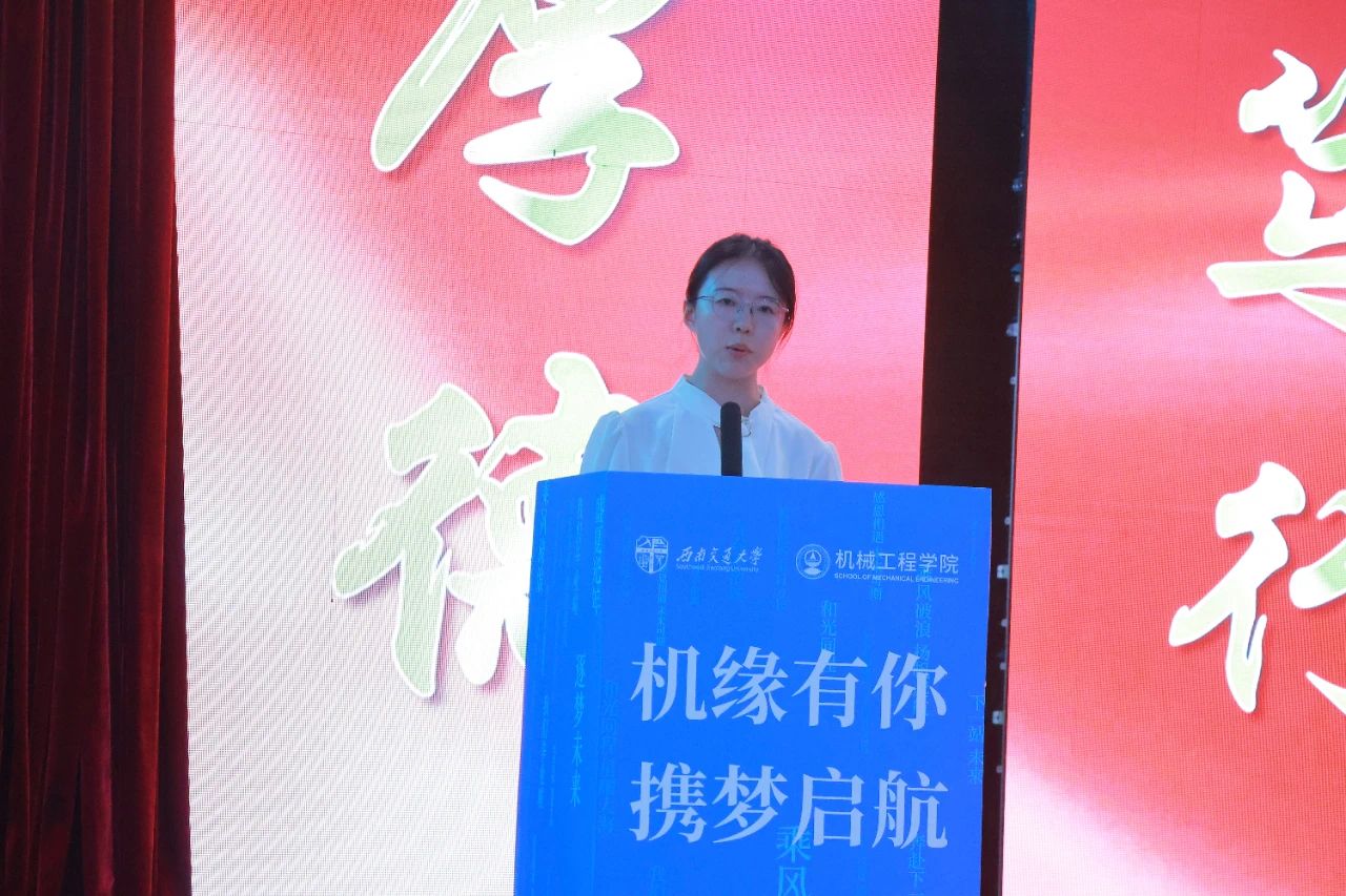 学子心声诉深情,家校共育感师恩博士毕业生代表孙瑞雪、本科毕业生代表朱艾新同学先后发言。他们深情回顾了在学院求学的点滴成长与收获,表达了对母校、学院、师长和同窗的无限感激与不舍,并分享了在学习科研、竞赛实践中的难忘经历,展现了机械学子的风采与担当。他们表示将带着“竢实扬华,自强不息”的交大精神,在未来的道路上砥砺前行。