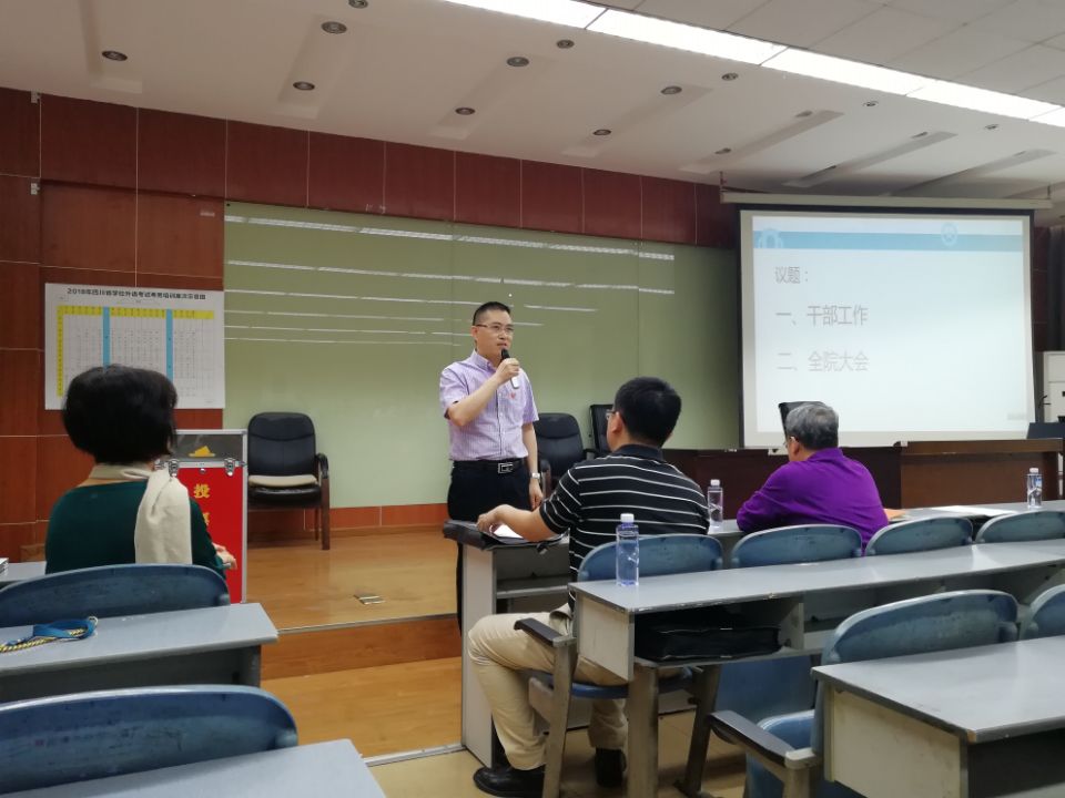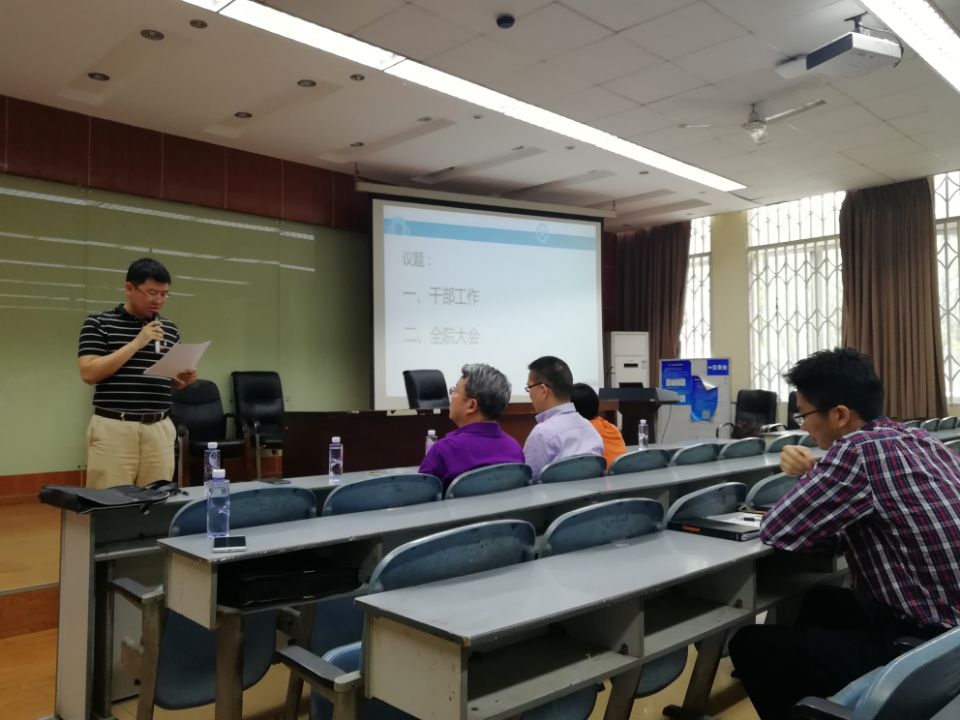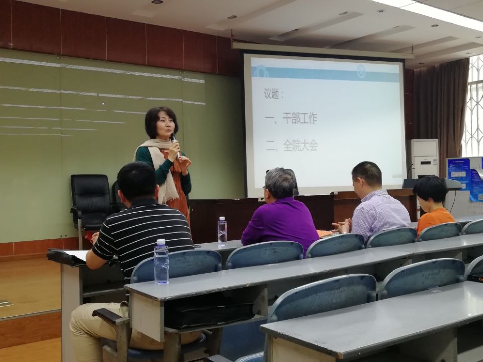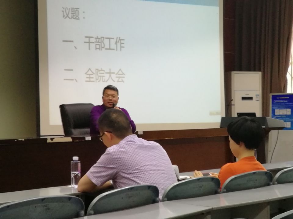 2018年4月28日下午,今年会jinnianhuicom全院教职工大会在逸夫馆4104召开。校组织部部长助理兼干部一科科长沈哲、干部二科燕莆龙、学院退休教工代表和全院在职教工参加了此次大会,大会由学院党委战凤书记主持。