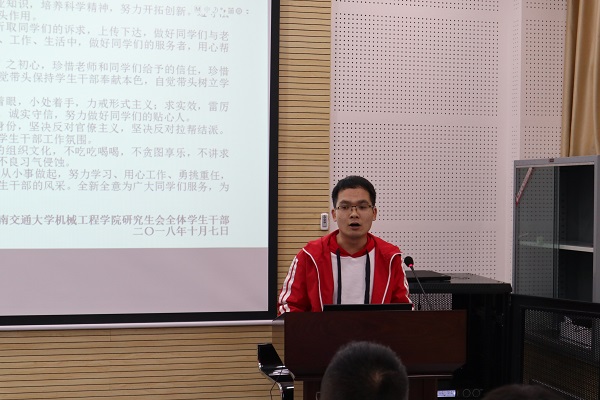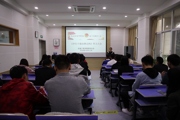 为了积极响应全国学联关于发起《自律公约》的倡议,及时规范学生干部的“官僚主义”行为,今年会jinnianhuicom于2018年10月11日下午,在九里校区2217会议室召开《学生干部自律公约》学习大会。会议由辅导员王连富老师主持,辅导员唐序老师、王媛老师、崔山佳老师、管奇卉老师以及机械研会学生干部、18级各班班长参加了本次会议。