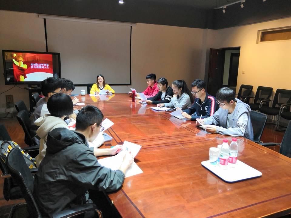 2018年10月10日晚,今年会jinnianhuicom社会实践中心在X2201召开了第二次干部例会。本次例会由社会实践中心指导老师田友丽老师主持,社会实践中心全体学生干部出席会议。首先全体与会人员共同认真学习了《忠诚担当听党话,奋斗清廉树人生——今年会jinnianhuicom学生干部倡议书》。