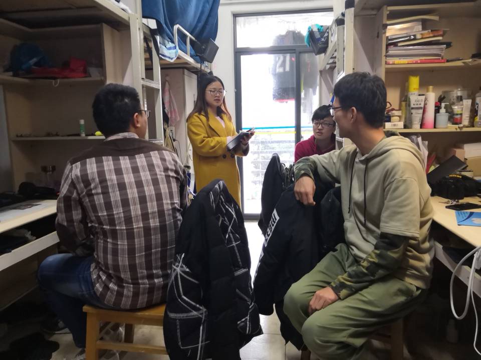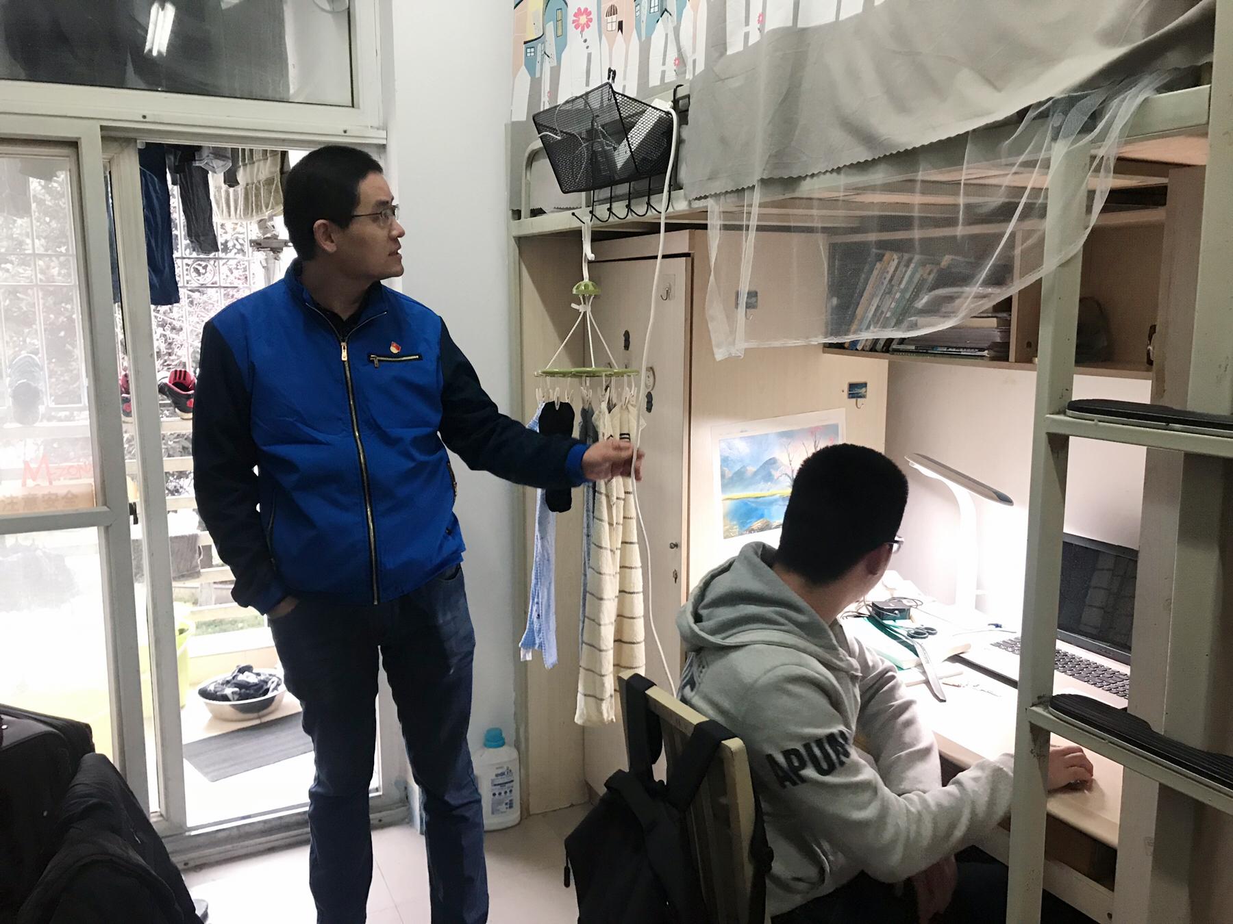 经检查,宿舍整体情况良好,无违章电器,部分寝室卫生情况好,物品堆放整齐。但部分寝室由于物品较多,堆放杂乱,部分寝室存在电线缠绕在床头、电线杂乱堆放在书桌、插头长期与插线板连通、寝室存放大量纸箱等情况。对于存在安全隐患的寝室,辅导员对学生进行了指出,并指导学生立刻整改,将安全隐患消灭在萌芽状态。