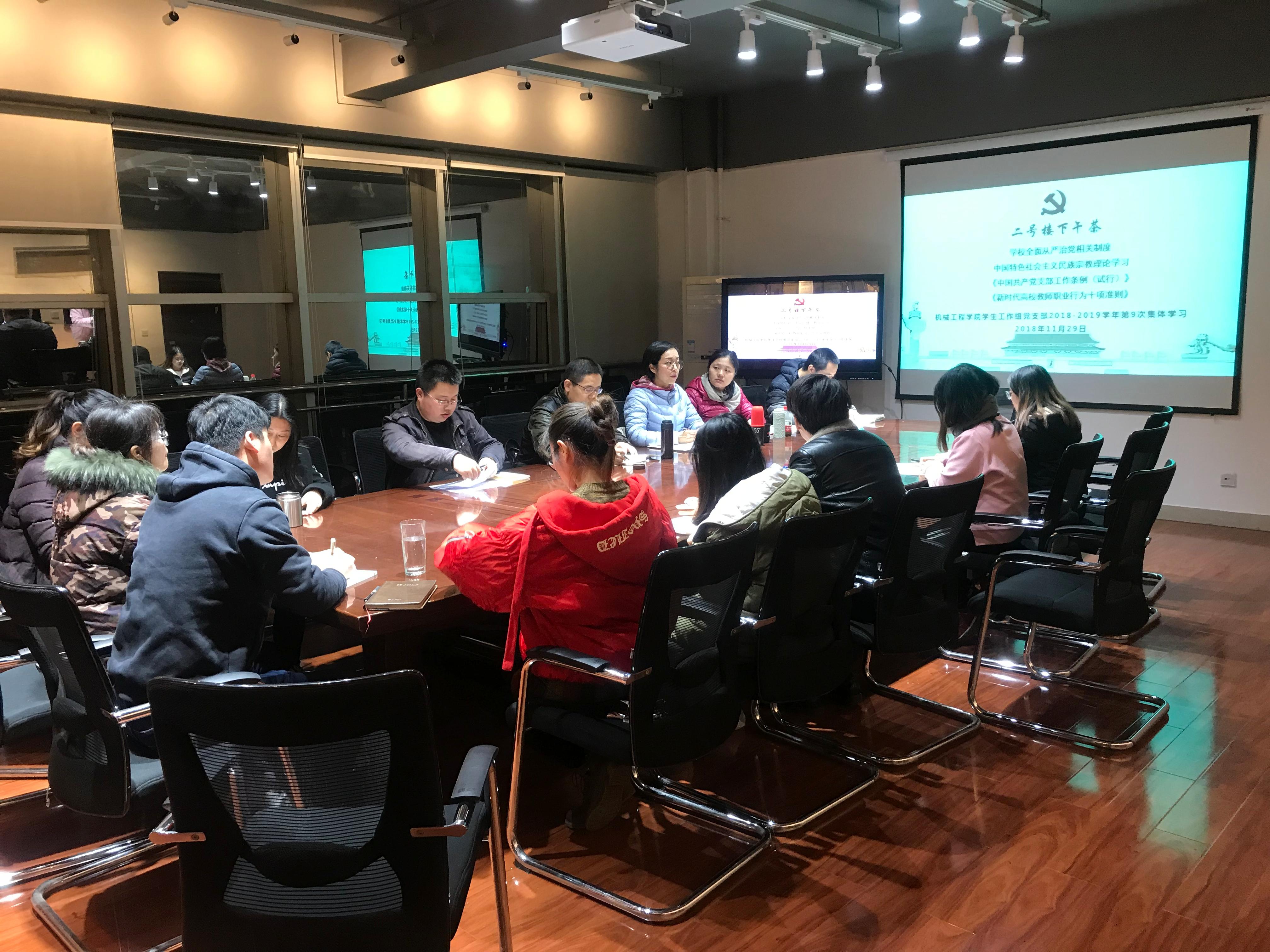 中共中央近日印发了《中国共产党支部工作条例(试行)》(以下简称《条例》),教育部印发了《新时代高校教师职业行为十项准则》,学校印发了《中国特色社会主义民族宗教理论知识手册》,学校召开的第十四届委员会第103次常委(扩大)会议审定了《中共金年金字招牌诚信至上委员会关于落实全面从严治党党委主体责任和纪委监督责任的实施办法(试行)》、《中共金年金字招牌诚信至上委员会关于践行监督执纪“四种形态”的实施办法(试行)》、《中共金年金字招牌诚信至上委员会关于纪检监察机构“转职能、转方式、转作风”的实施办法(试行)》、《中共金年金字招牌诚信至上委员会关于贯彻执行<中国共产党问责条例>的实施办法(试行)》、《中共金年金字招牌诚信至上委员会关于职能部门和单位发现违纪违法问题线索移送纪检监察部门的实施办法(试行)》(以下简称“五个制度”)。为全面深入领会各文件精神,11月29日晚18点30分,学生工作组党支部在X2201召开专题学习会学习了相关文件。会议由学生工作组党支部书记于楠同志主持,党支部全体成员参与。