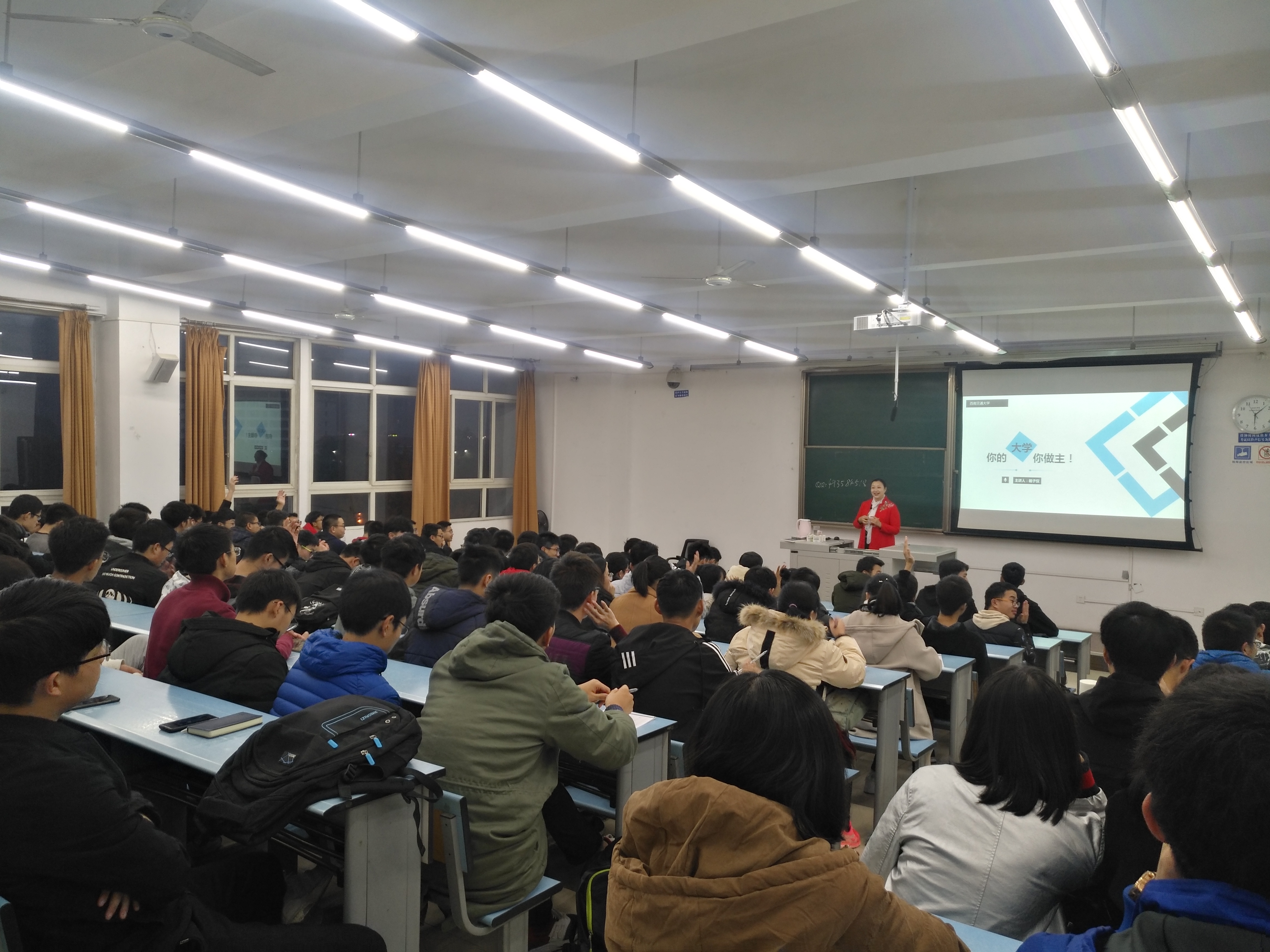 杨子仪老师充满热情的讲课风格,获得同学们积极响应,讲座时间不长,但丰富的内容让同学门收获颇丰,讲座圆满开展。最后杨老师为同学们送上祝福“祝大家学业有成,大学快乐!你的大学,你做主!”,也希望2018级同学们能真正“做主”自己的大学,规划好自己的职业生涯在大四时有满满的收获。