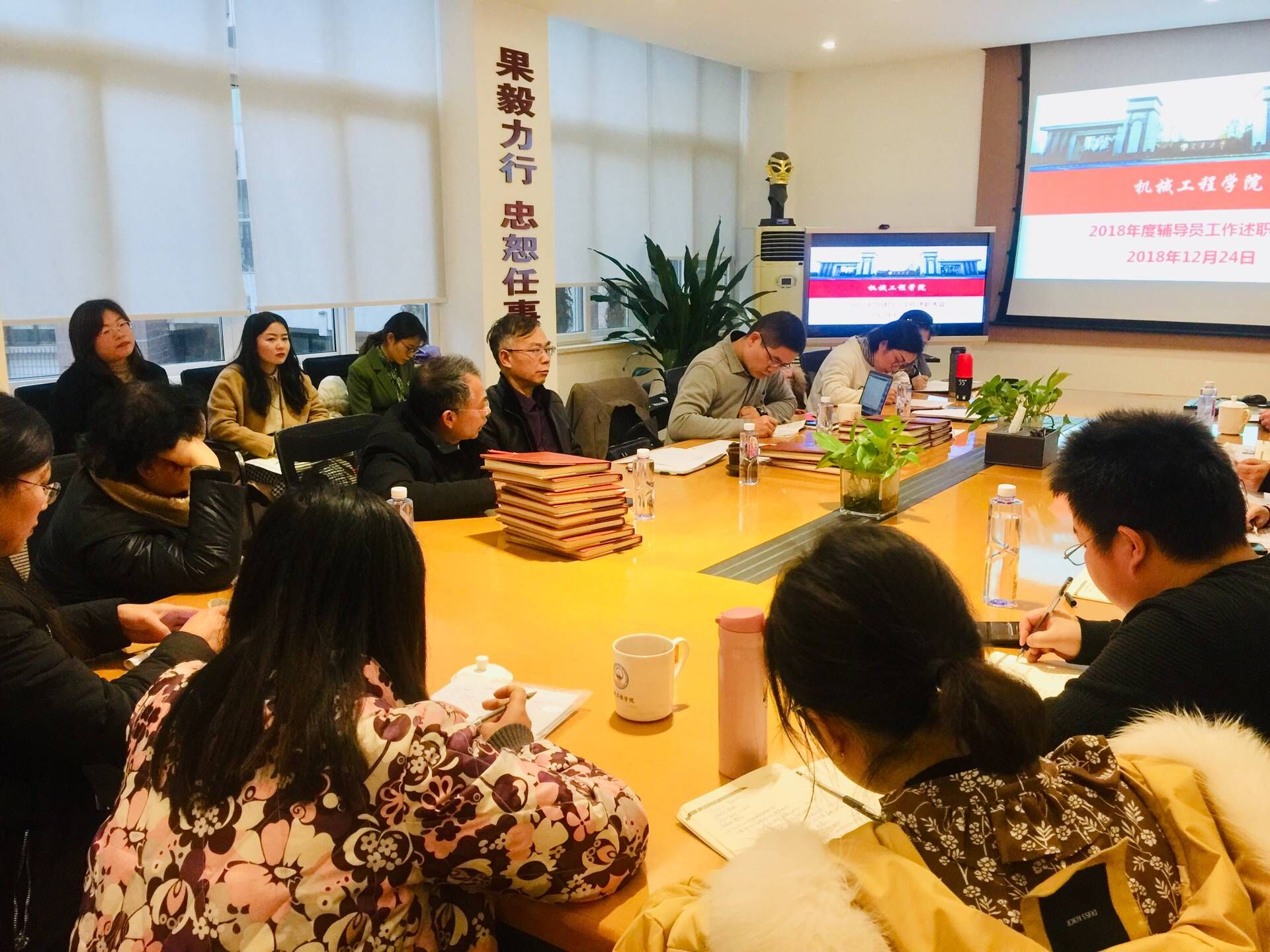 12月24日下午,今年会jinnianhuicom学生工作组在九里校区J2206开展岗位述职,学院党委书记董大伟、副院长田怀文、导师代表周斌、学生工作组负责人李毅、教师支持办公室蒋群华担任评委并对述职情况进行了点评。