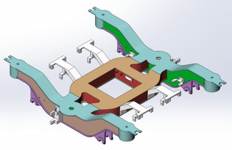1.完成图纸绘制,在SolidWorks中初步完成转向架总体方案图A0和构架A0图绘制,再用Cad进行标准化修改。