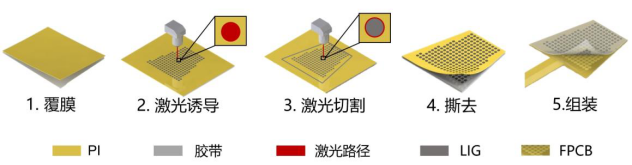 压力传感器的制备需要考虑到传感器的结构、材料和加工方式的特点,解决传感器的阵列化、图形化和电气集成问题,实现激光诱导石墨烯(LIG)柔性压力传感阵列的低成本快速制造。传统的压力传感器阵列通常是由刚性材料制作而成的平面阵列,但是由于关节腔与关节假体形状复杂,不适合使用平面压力传感器阵列进行测量,需要设计具有柔性且能够适形关节曲面的压感阵列,从而高密度地精准捕捉关节腔内的压力信息。