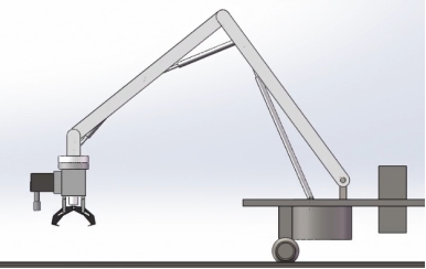 根据工况确定机械臂将使用三臂结构,基座使用液压马达控制旋转,末端机械手由液压马达控制旋转,液压缸控制夹取。
