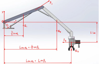 根据对应工位的工作角度做出力学分析,并最终确定液压缸的型号。