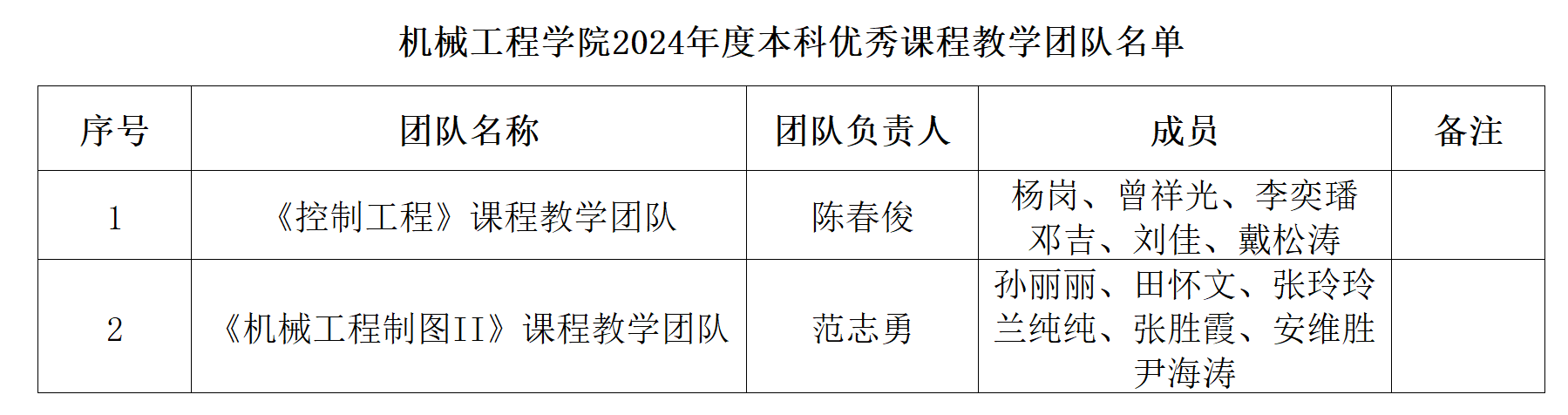 为提升教学质量,鼓励教师积极开展教研活动,促进教师发展,发挥课程团队在教学改革方面引领示范作用,根据“今年会jinnianhuicom关于2024年度本科优秀课程教学团队评选的通知”,学院组织专家对申报材料进行评审,评选出2个院级优秀课程教学团队,现公布如下: