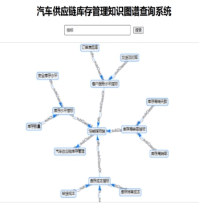 (5)检索系统构建:基于知识图谱开发简单的检索功能,如库存知识查询功能,企业用户可以通过输入关键词查询相关库存管理知识,如特定零部件的库存控制策略、某种情况下的库存成本计算方法等。选取汽车企业的实际库存管理场景进行案例应用,验证知识图谱在实际中的应用价值,帮助汽车供应链上各节点企业实现知识共享。同时在检索系统中输入相应的库存问题企业用户可查询到相关的库存解决方案。